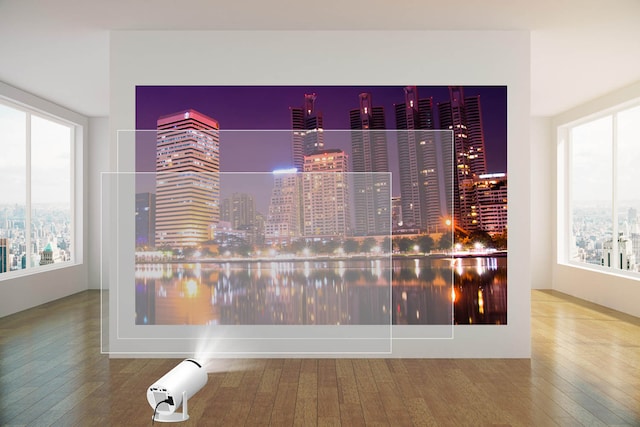 Takket være auto-keystone-korrigering trenger du ikke å bekymre deg for å få et skjevt bilde. Projektoren justerer automatisk bildet for å vises i riktige proporsjoner, uavhengig av vinkel.