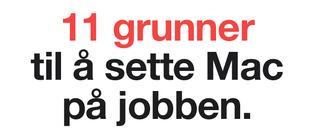 Mac er intuitiv å bruke og enkel å administrere. Enkelt oppsett og Apples Overføringsassistent hjelper deg med å komme raskt i gang med Mac. Og du kan stole på at maskinvaren ikke svikter deg, slik at den er perfekt for selskaper både med og uten dedikert IT‑støtte.