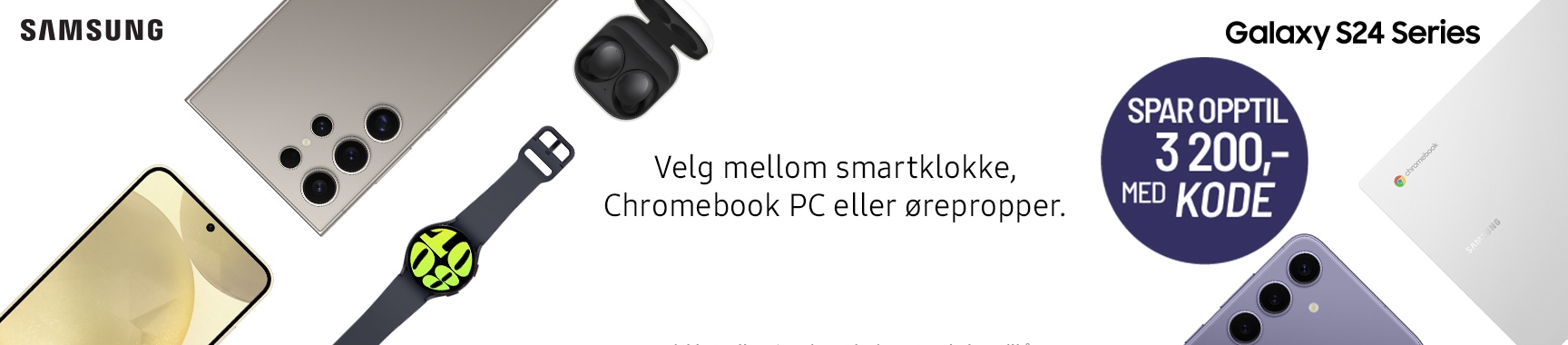Ved bruk av rabattkoden GS24SPRING sparer du 1 600,- når du kjøper en Galaxy S24.
