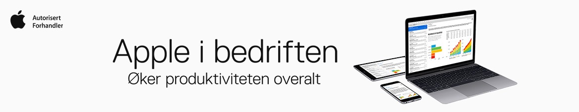 Apple i bedriften øker produktiviteten overalt! Som Apple-autorisert forhandler er Komplett Bedrift et trygt valg for deg og din bedrift når det gjelder alle Apple-produkter. Vi bestreber oss på alltid å være først med nyheter, ha konkurransedyktige priser og ha varer på lager for rask levering.