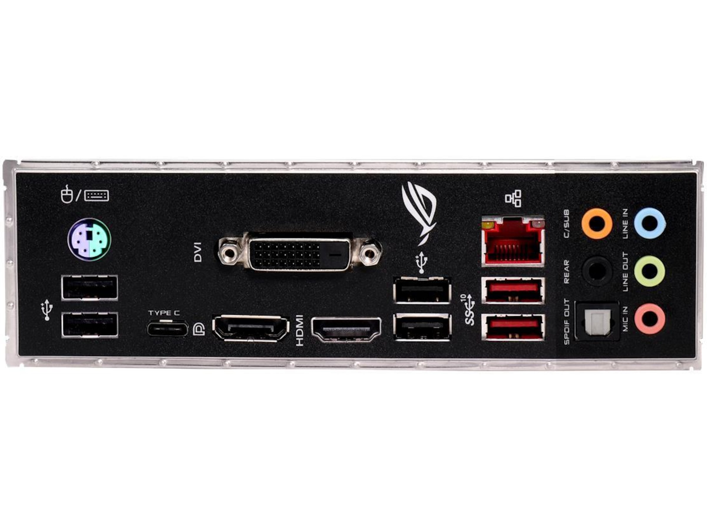| Grensesnitt | 1 x mikrofon - minijakk, 1 x lydinnlinje - minijakk, 2 x USB 3.1 Gen 2, 1 x USB-C Gen2, 1 x lydutlinje (senter/subbasshøyttaler) - minijakk, 1 x DVI-D, 1 x TOSLINK, 1 x PS/2-tastatur / -mus, 1 x lydutlinje - minijakk, 1 x LAN (Gigabit Ethernet), 1 x lydutlinje (bakre) - minijakk, 1 x DisplayPort, 1 x HDMI, 4 x USB 2.0 |