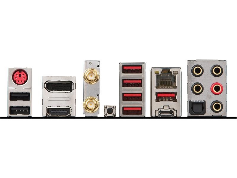 | Grensesnitt | 1 x lydutlinje - minijakk, 1 x mikrofon - minijakk, 1 x lydutlinje (bakre) - minijakk, 1 x TOSLINK, 2 x USB 2.0, 1 x PS/2-tastatur / -mus, 1 x USB 3.1 Gen 2, 1 x lydinnlinje - minijakk, 4 x USB 3.1 Gen 1, 1 x lydutlinje (senter/subbasshøyttaler) - minijakk, 1 x USB-C Gen2, 1 x HDMI, 1 x LAN (Gigabit Ethernet), 1 x DisplayPort |