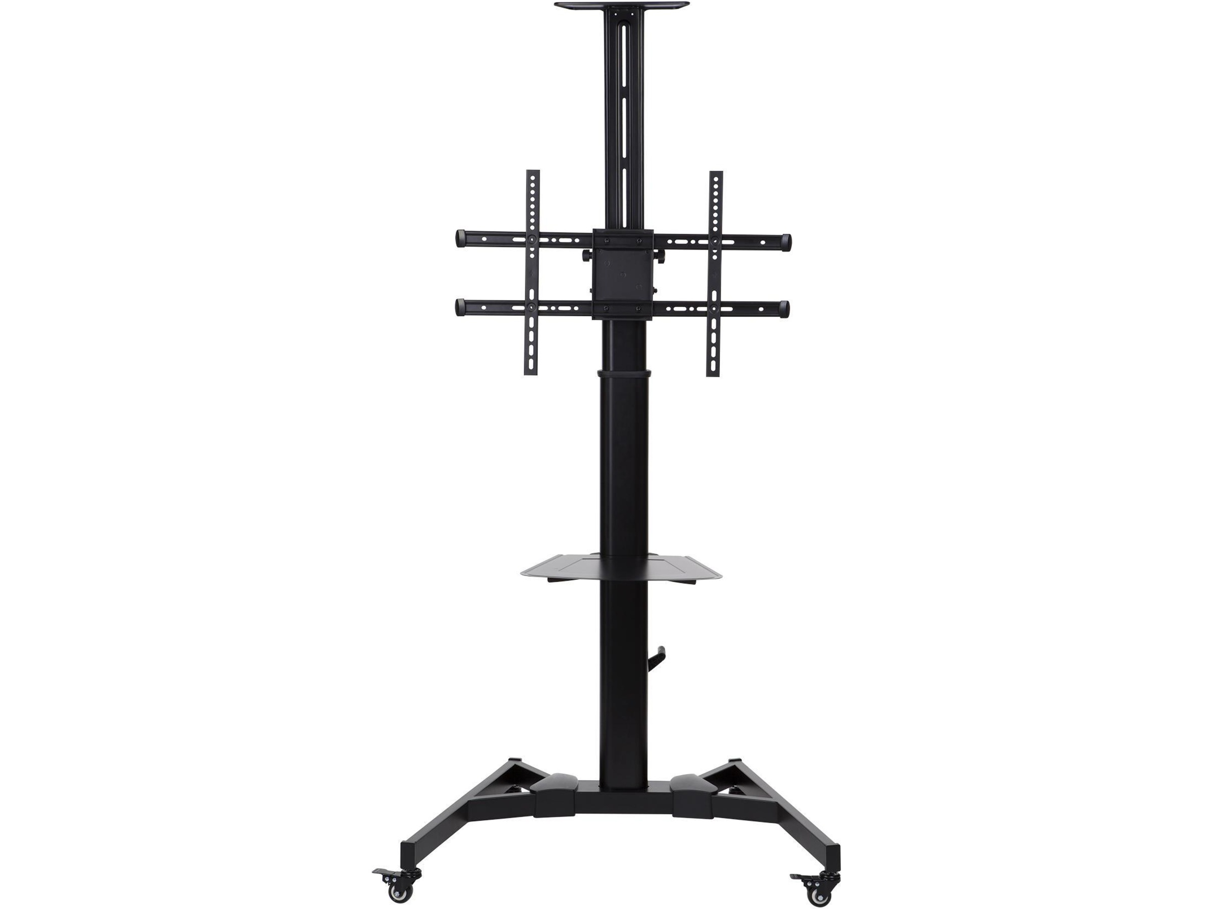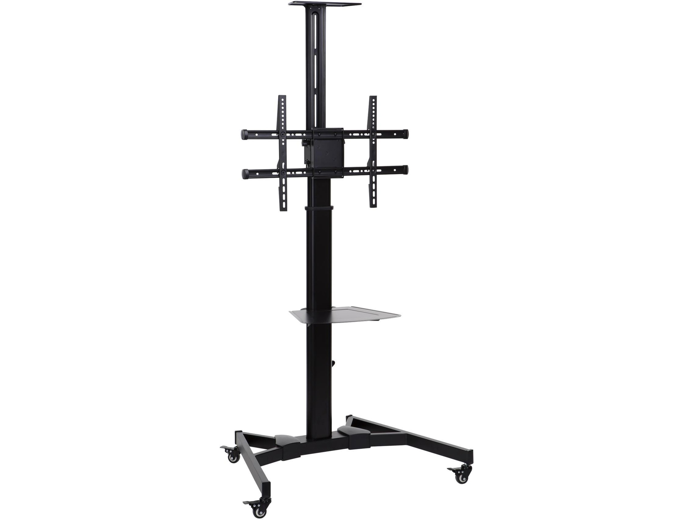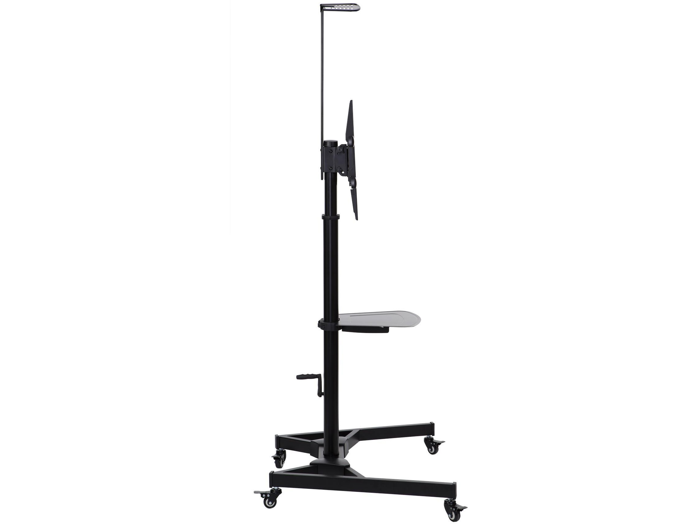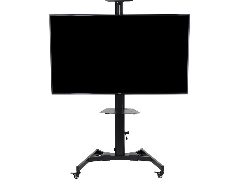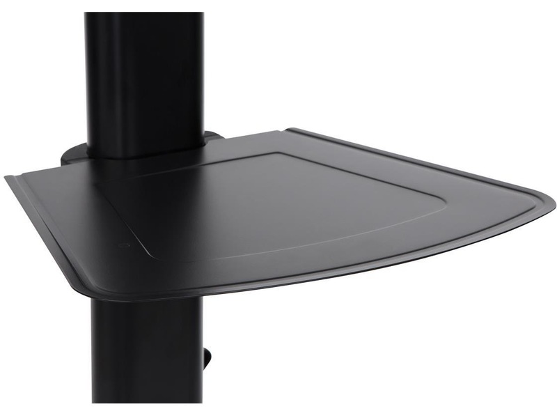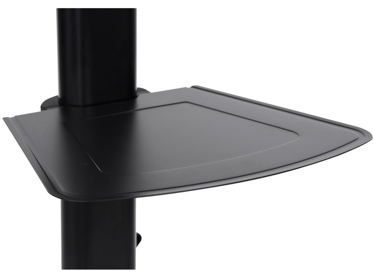 TV-trallen kommer med to praktiske hyller. Den ene er passe for en laptop og du kan selv bestemme hvilken høyde den skal være. Den andre er plassert over flatskjermen for muligheter for webkamera. Du kan velge om du vil montere på disse hyllene. Skjermen du monterer kan også tiltes for optimal visningsvinkel. Den lar deg også montere public display i portrett visning og flate og kurvede skjermer. Med mange monteringsmuligheter, høyde, hjulsett, gir denne trallen deg mye fleksibilitet og mobilitet.