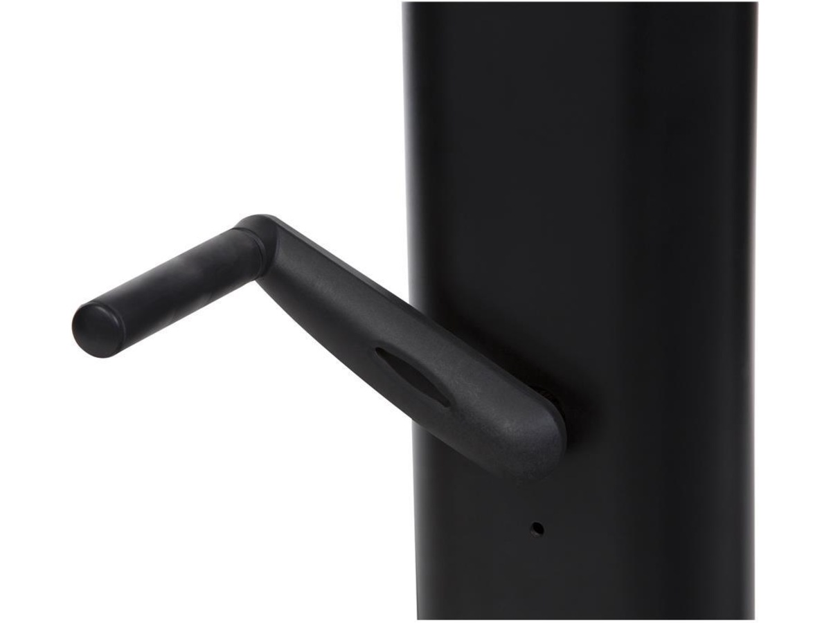 Til tross for den ferdige størrelsen er TV-trallen overraskende enkel å montere. Flatskjermens høyde kan reguleres. Dette gjør du enkelt med en sveiv. Du kommer lett til kablene bak TVen, og gjemmer de i hule monteringsrørene. Da slipper du unødvendig kabelrot ved forflytning av trallen. Flatskjermens høyde kan reguleres, dette gjør du enkelt med en sveiv. Trallen står på en stødig base med låsbare hjul.