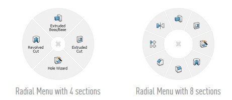 Each of the SpaceMouse Compact’s two buttons opens its own 3Dconnexion radial menu. They provide direct access to up to 8 of your favorite application commands. With our software 3DxWare 10 you easily create your own radial menus in seconds or choose from useful presettings.