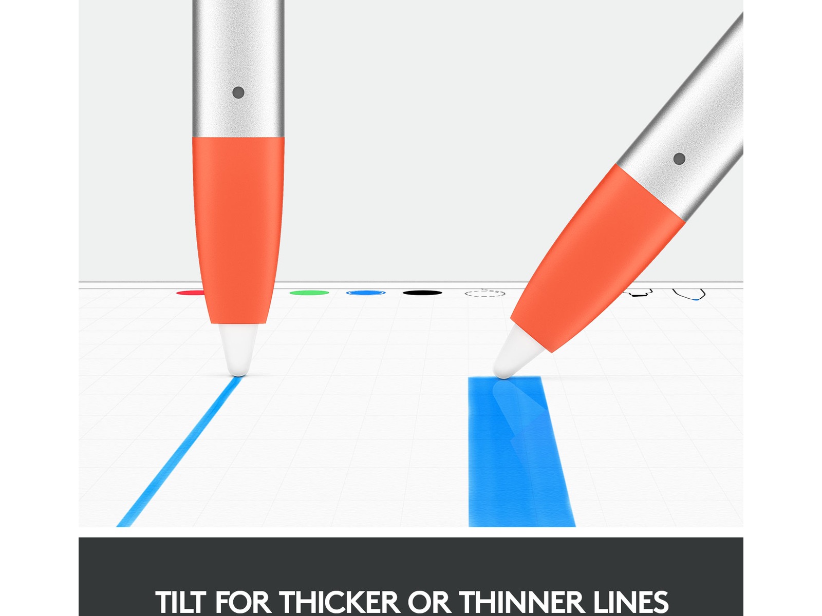 Trenger du en tykkere eller tynnere linje? Bare sett enheten i vinkel. Logitech Crayon har en smart spiss som justerer linjevekten dynamisk avhengig av vinkelen* du setter den i – akkurat som en vanlig blyant.