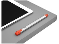 Den unike designen til Logitech Crayon er ikke bare estetisk. Med sin flate utforming holder den seg akkurat der du legger den fra deg. Den ruller ikke ned av bord eller blir borte under hyller.