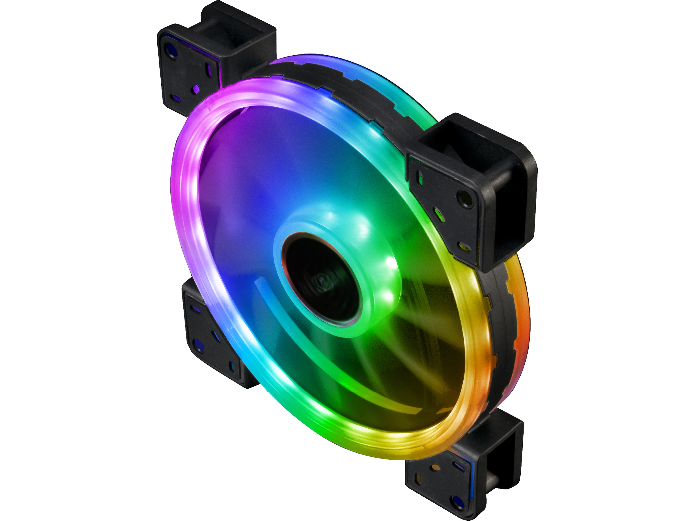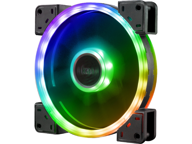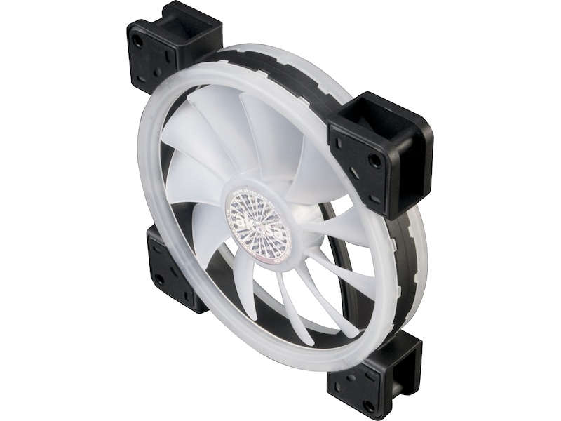 Tosidig kjølevifte med 140 mm dobbeltsløyfe og 27 adresserbare RGB LED-lys fordelt mellom indre og ytre sløyfer. Matte, gjennomskinnelige blader sørger for maksimal lysstyrke og er konstruert for å være stillegående.