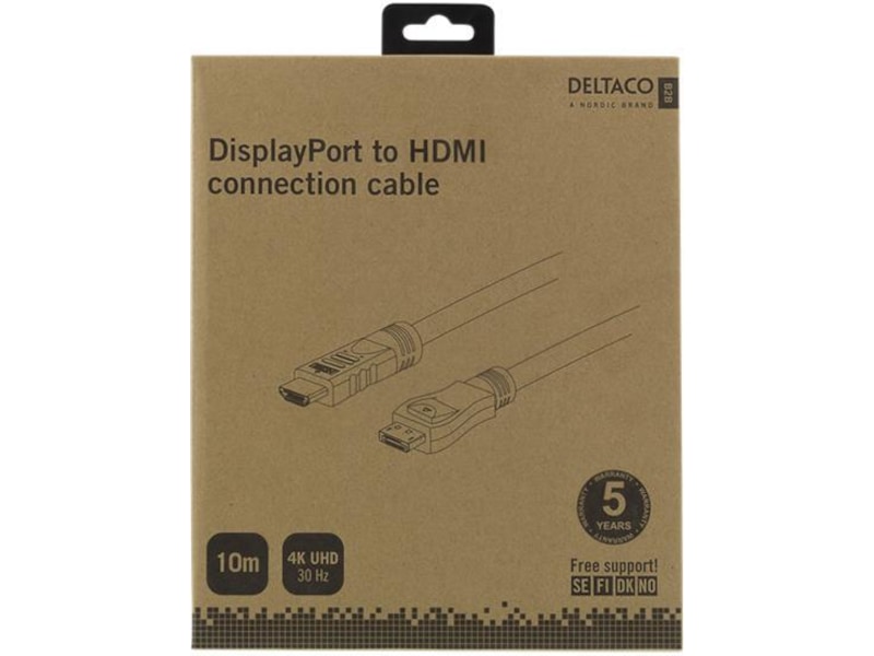 DELTACO DisplayPort til HDMI-kabel, 10m