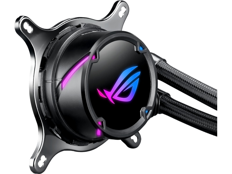 ROG Strix LC er utstyrt med den ikoniske ROG-logoen og kuttmønsteret på pumpehuset som begge lyser med Aura RGB-belysning, og det sikrer at du får en livlig eksplosjon av farger og stil i hjertet av PC-en din. Fargen og lyseffektene kan tilpasses så de står til resten av maskinen, slik at du får et helhetlig uttrykk som er fullstendig ditt eget.