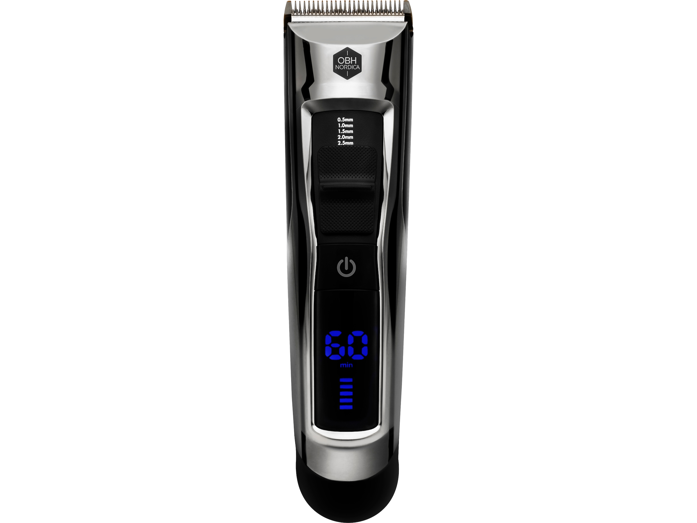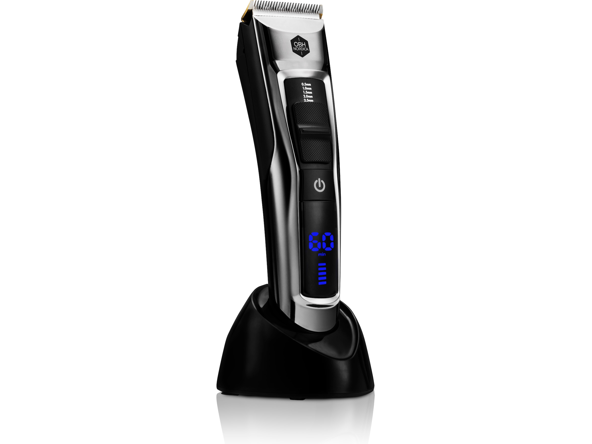 Force Control er en kraftig og presis hårklipper, designet med inspirasjon fra profesjonelle barberverktøy. Et oppladbart Li-ion-batteri som sørger for opp til 60 minutters trådløs driftstid. Det tar 1,5 time å lade opp batteriet, og du kan bruke hårklipperen både med og uten ledningen. Det oversiktlige, digitale displayet viser deg hvor lang driftstid som gjenstår og batterinivået.