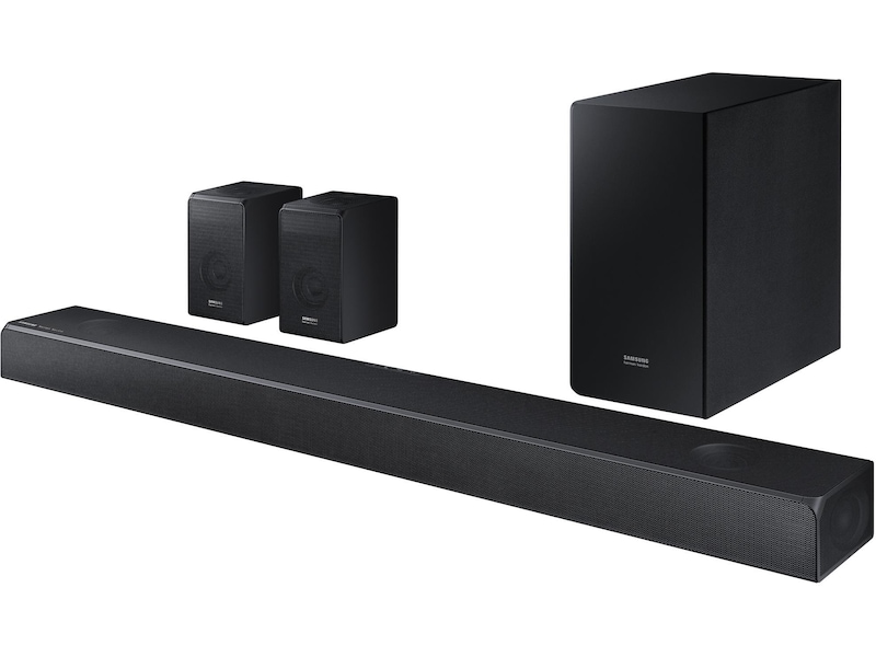 | Systemkomponenter | Lydplanke, Subwoofer, 2 høyttalere |