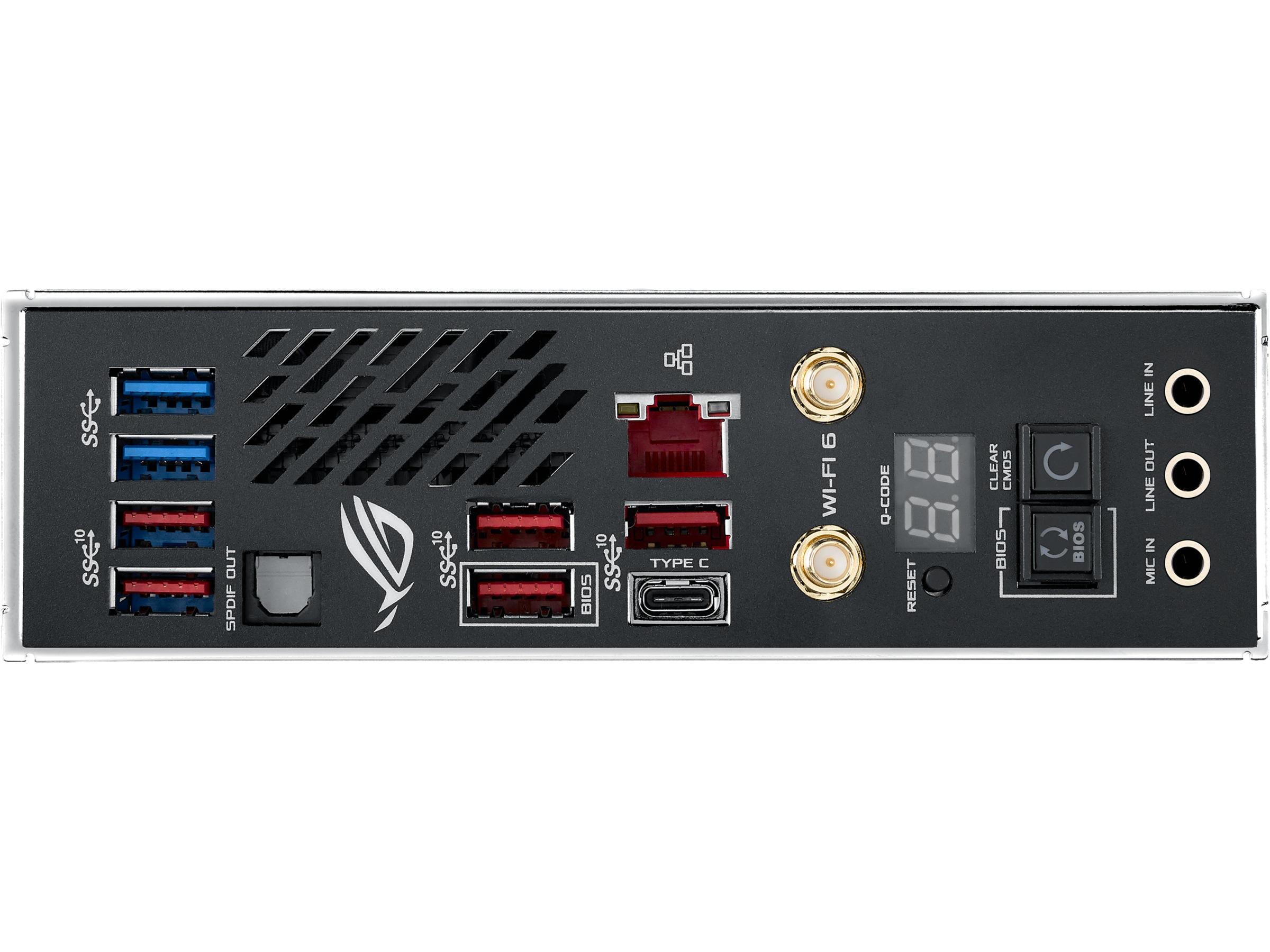 | Maskinvarefunksjoner | Armoury Crate, Infineon TDA21472 Power Stage, ASUS Q-Design, LANGuard, ASUS ROG Extreme OC, ASUS SafeSlot, C.P.R. (CPU-parameterminne), Formontert I/O-skjerm, ASUS DIGI+ VRM, CrashFree BIOS 3, Sonic Radar III, Clear CMOS Button, Q-Slot, 10K Black Metallic Capacitors, GameFirst, MicroFine Alloy Chokes, ASUS Extreme Engine Digi+, ESS ES9023P, ASUS TPU (TurboV Processing Unit), ASUS EPU (Energy Processing Unit), ASUS Node, Preboot eXecution Environment (PXE), ASUS Aura Sync, Q-Code, ASUS Extreme Tweaker, ASUS Fan Xpert 4, SupremeFX Shielding-teknologi, Q-LED, Sonic Studio III, Dual Intelligent Processors 5, ASUS ProCool II, ASUS OptiMem III, Q-DIMM |