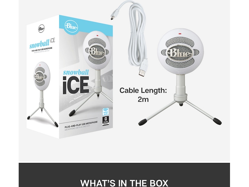 Snowball iCE er den raskeste og enkleste måten å få lyd av høy kvalitet på for opptak og strømming. Snowball iCE drives av en tilpasset kardioidekondensatorkapsel og leverer krystallklar lydkvalitet som er lysår foran den mikrofonen som er bygd inn i datamaskinen din. Den er til og med sertifisert for Skype og Discord, noe som garanterer gode lydresultater uansett hvordan eller hvor du bruker den – hjemme eller på kontoret.