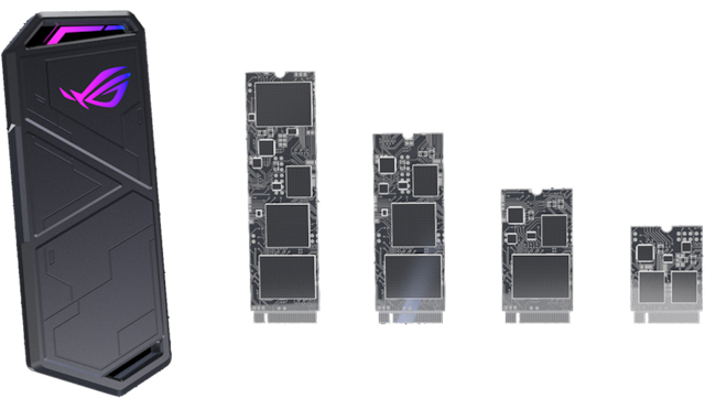 ROG Strix Arion fits 2230/2242/2260/2280 M.2 PCIe NVM Express® SSD up to 2TB with M key/ B+M key.