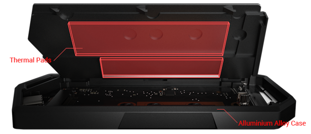 Aluminum alloy case and thermal pads deliver aggressive heat dissipation