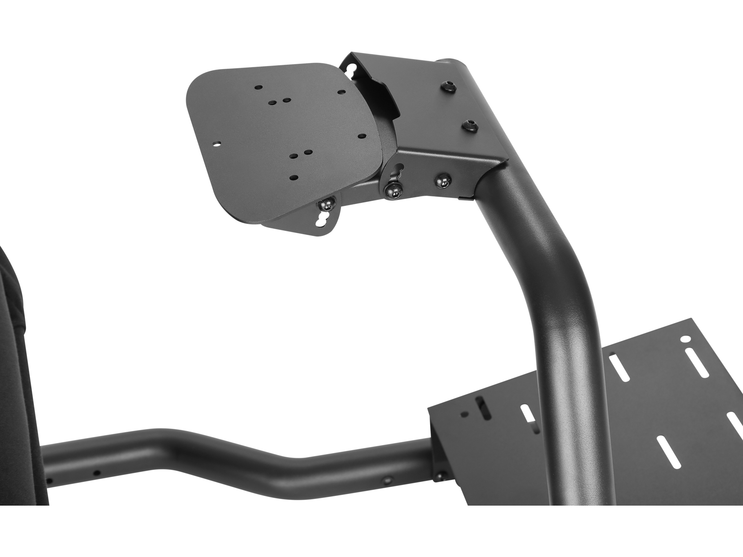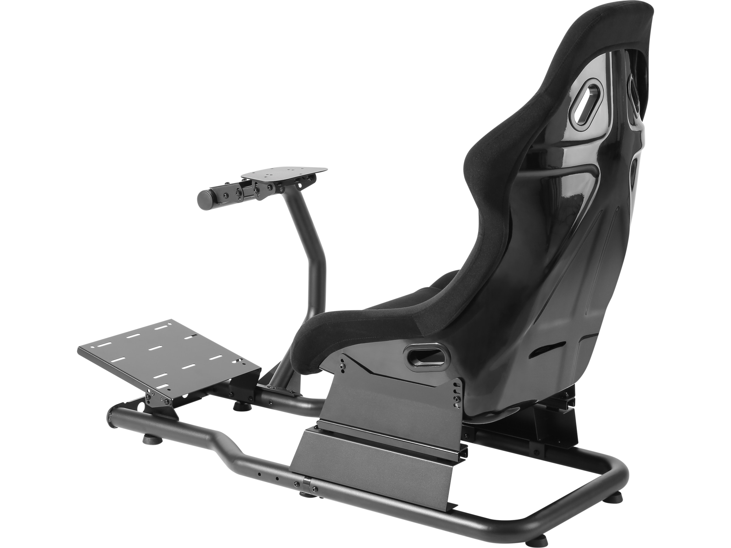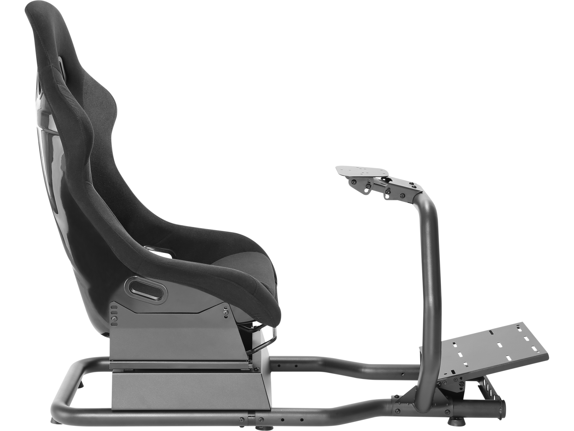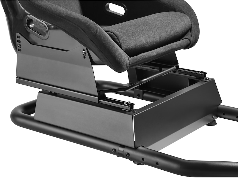 Større stabilisatorstag forbedrer smidigheten og gjør setet stivere og fastere. Den solide stålrammen har justerbare fester for hjul (forboret for Logitech, Thrustmaster og Fanatec-hjul), pedaler og girspaker.