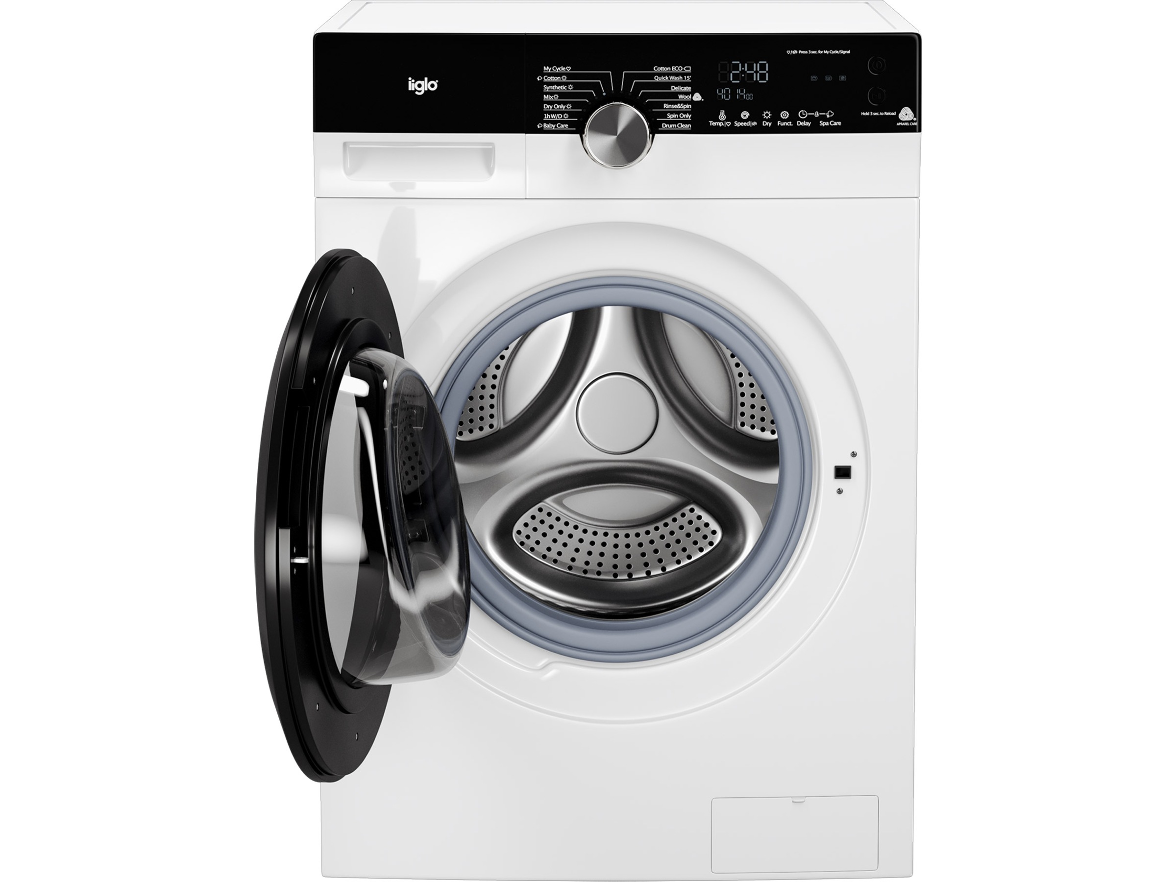 - Skånetrommelen til iiglo har unike, krystallformede hull som skaper et perfekt miljø for skånsom og effektiv vask av tøy. Du vil med andre ord oppleve mindre slitasje, sammenlignet med andre modeller.