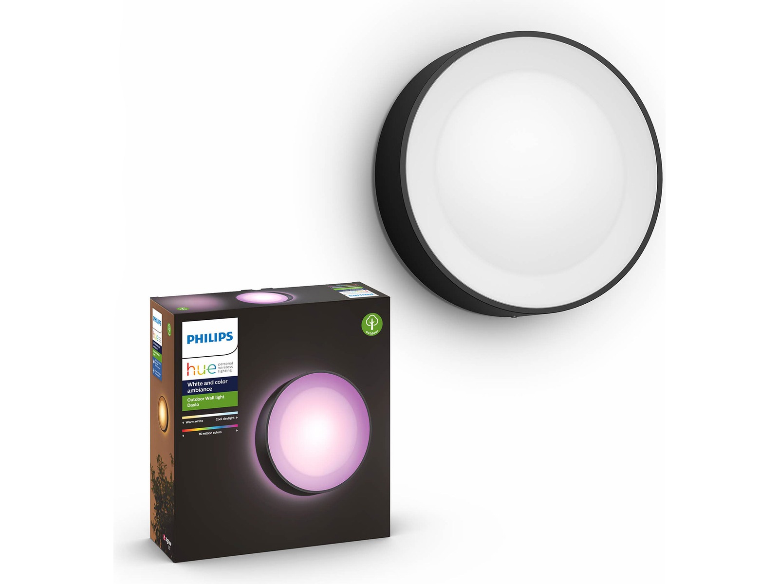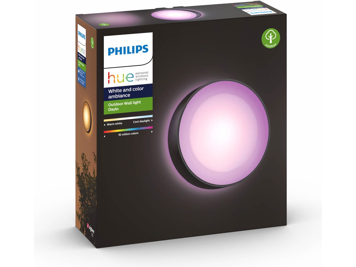 White and color ambiance-lys lar deg velge mellom 16 millioner farger, og du kan stille inn timere og justere nyansene for å passe til enhver anledning, humøret ditt og daglige rutiner. Armaturen har lang levetid og er IP44-klassifisert, slik at den tåler all slags vær.