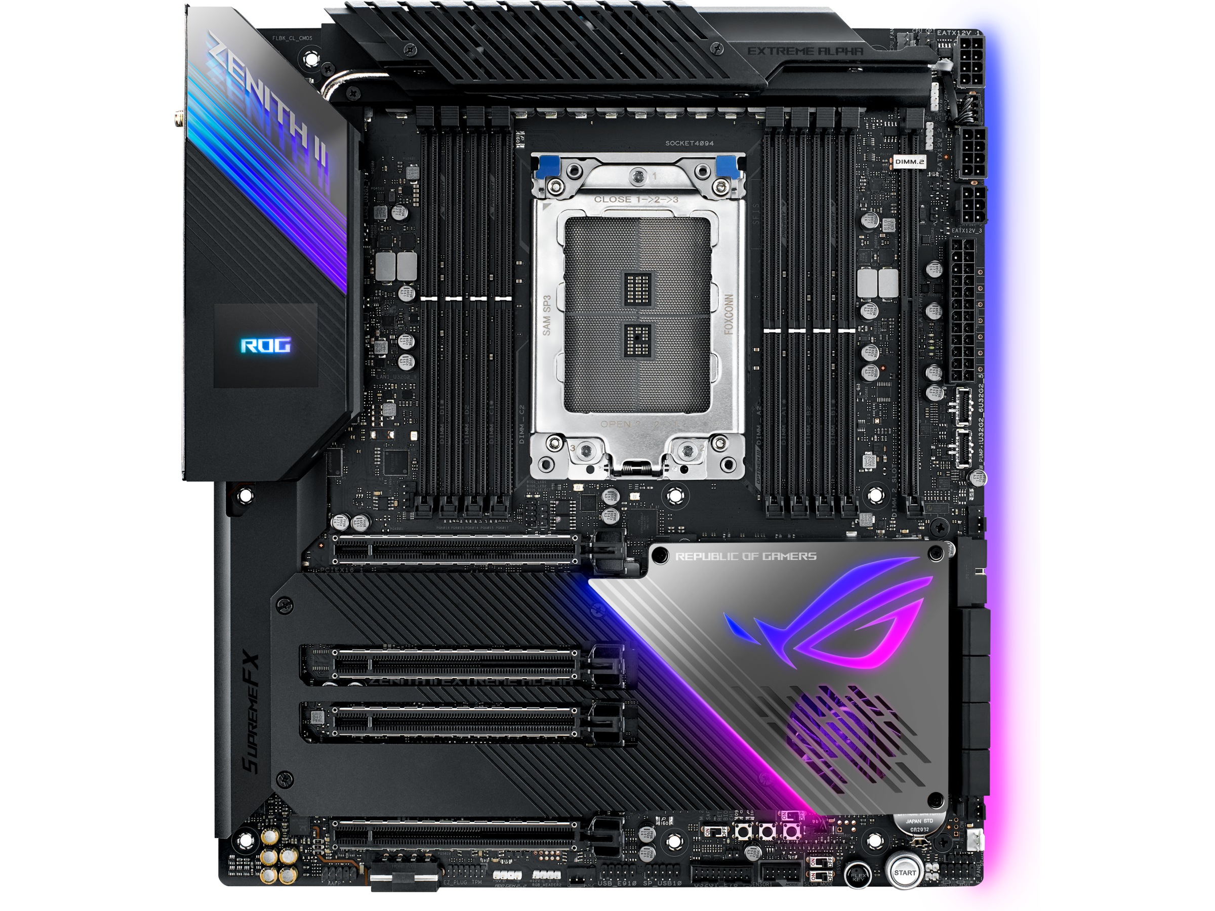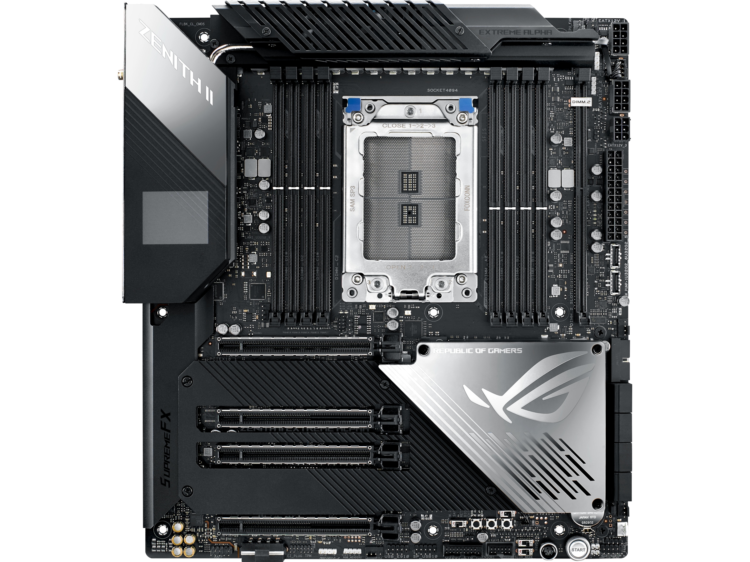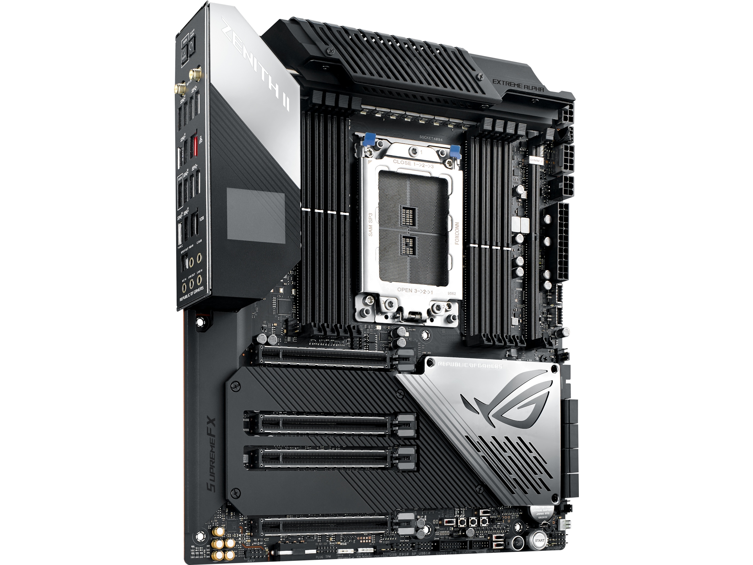 | Utvidelsesspor | 8 x 288-pins DIMM, 4 x PCIe 4.0 x16 (x16, x16/x16, x16/x8/x16, x16/x8/x16/x8 modes), 1 x CPU |
