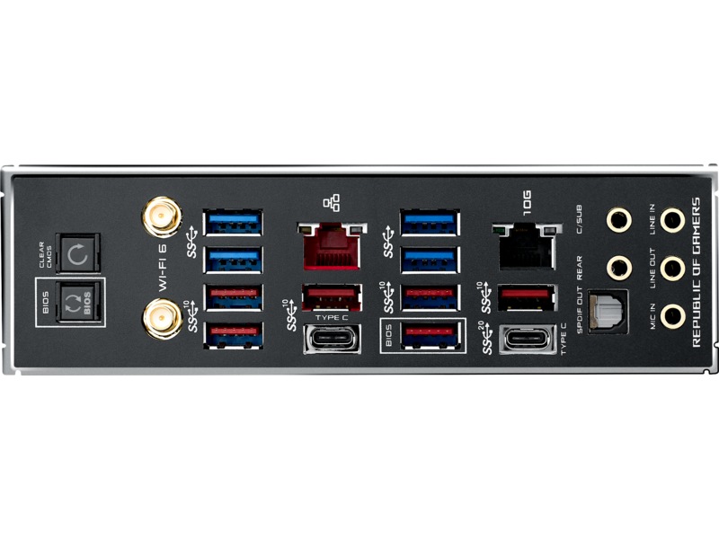 | Grensesnitt | 1 x LAN (10Gigabit Ethernet), 1 x lydutlinje (bakre) - minijakk, 1 x lydutlinje - minijakk, 1 x mikrofon - minijakk, 1 x USB-C Gen2, 1 x USB-C Gen2x2, 1 x lydinnlinje - minijakk, 1 x lydutlinje (senter/subbasshøyttaler) - minijakk, 1 x LAN (Gigabit Ethernet), 1 x TOSLINK, 3 x USB 3.2 Gen 2 |