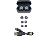HearThrough-modus bruker de 4 innebygde mikrofonene for å plukke opp lydene rundt deg og spille dem gjennom øreproppenes høyttalere, slik at du ikke trenger å stoppe avspillingen for å kunne høre hva som skjer rundt deg. Bruk glidebryteren som kan tilpasses i Jabra Sound+-appen for å tilpasse hvor mye av omgivelseslydene du vil høre. HearThrough fungerer når du lytter til lyd eller mottar en samtale, og også når det ikke er noen avspilling.