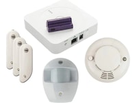 | Pakkeinnhold | 2x dør- og vindussensorer, Bevegelsessensor, Bevegelsessensor med kamera, SmartHub, Fjernkontroll |