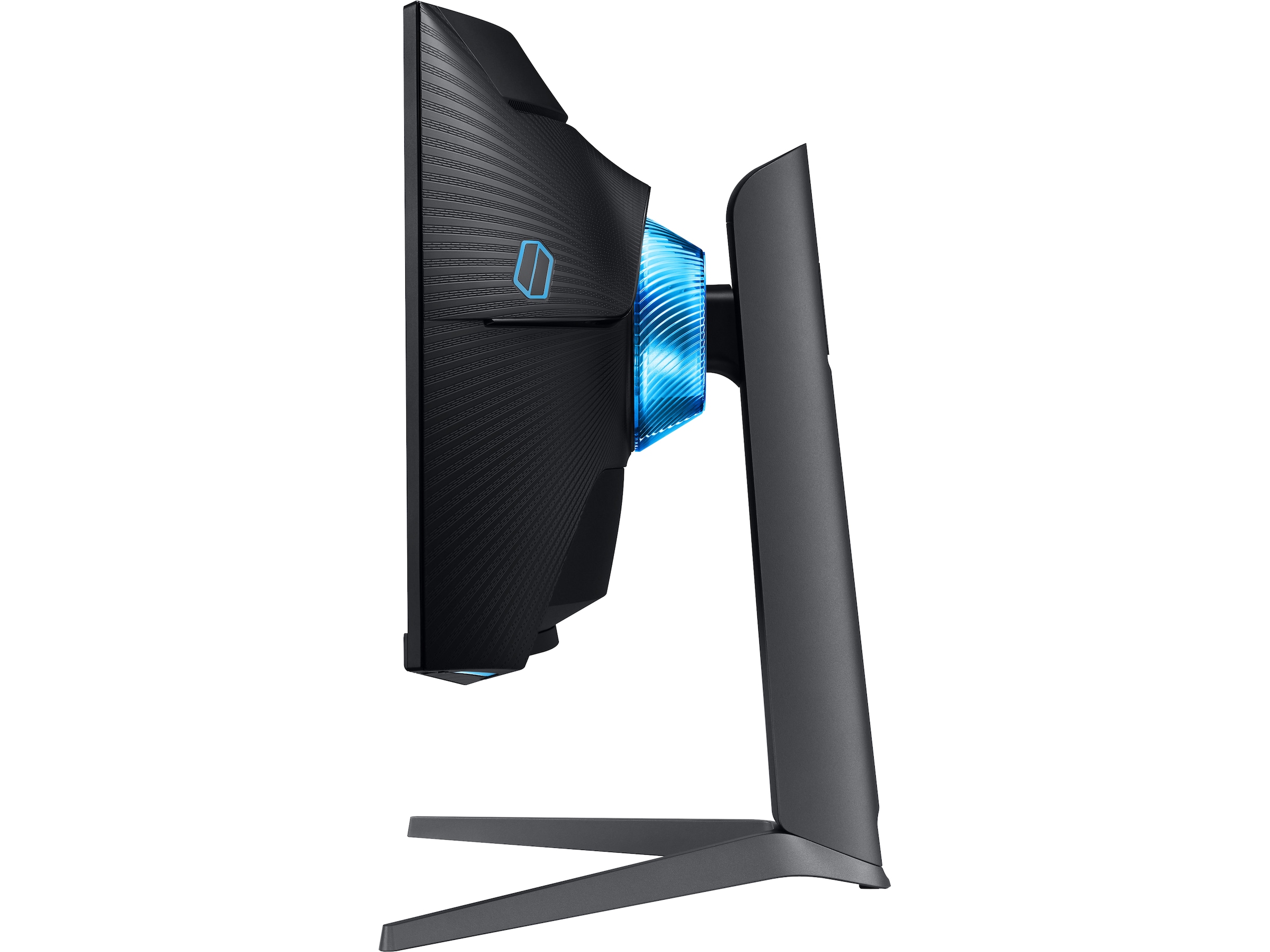 Infinity Core Lighting Design skaperet dristig inntrykk. Den elegante, mattsvarte utsiden kompletteres av et lekkert, futuristisk lyspanel. Kjenn seierens sødme med Samsung Odysseys futuristiske design.