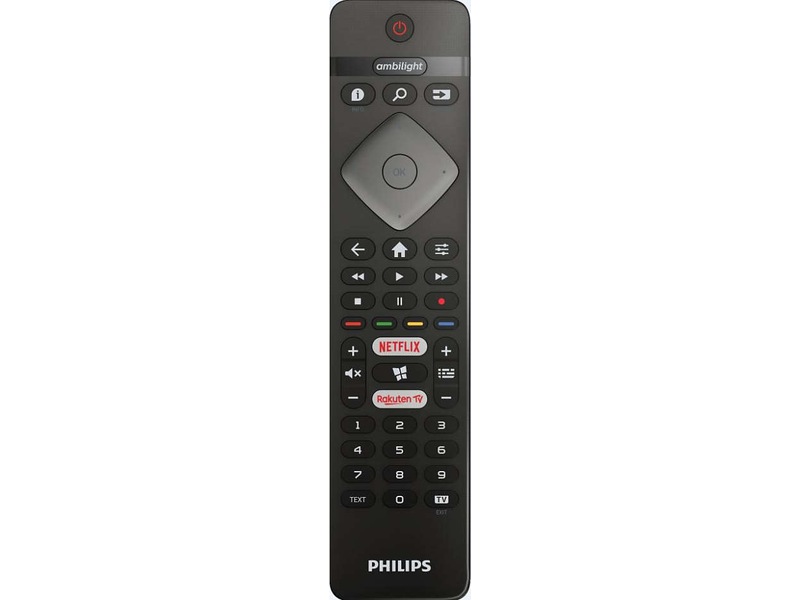 Det følger med fot, fjernkontroll og strømkabel.
