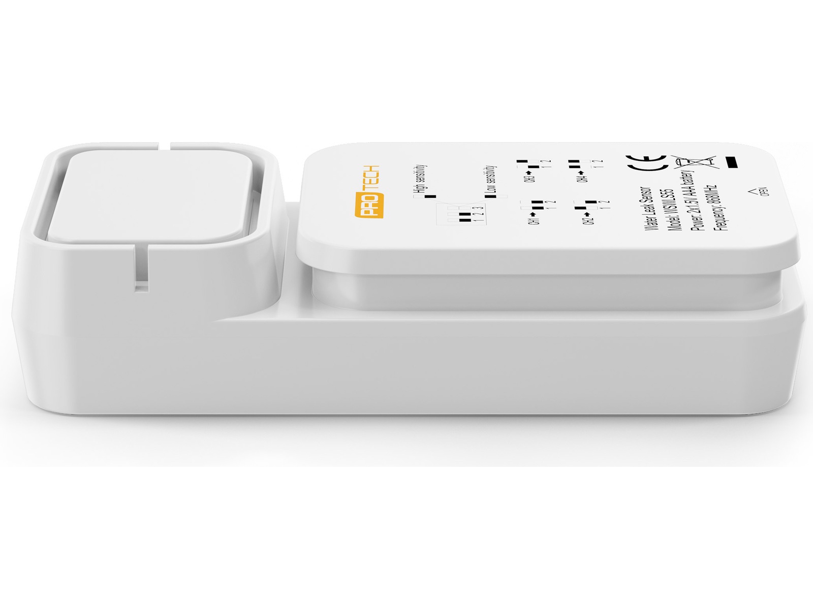 Protech Vannlekkasjesensor har en lang trådløs rekkevidde på opptil 100 meter og drives av to 1,5 V AAA-batterier (ikke inkludert).