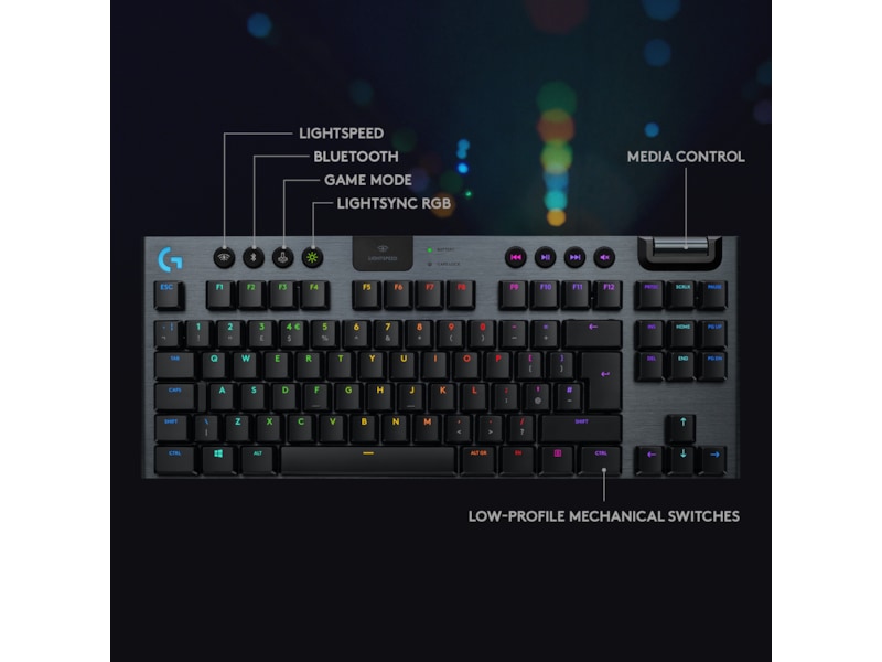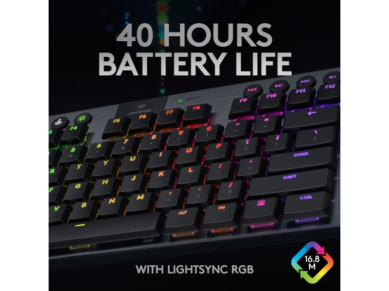 G915 tilhører en ny klasse av trådløse mekaniske spilltastaturer som kommer med 3 valg av lavprofils GL- brytere og 1 ms trådløs LIGHTSPEED- teknologi i proffklasse. Det kan levere 40 timers uavbrutt spilling på full lading. Alle tastene er fullt tilpassbare og med avansert LIGHTSYNC RGB teknologi kan du synkronisere belysningen med ethvert innhold.