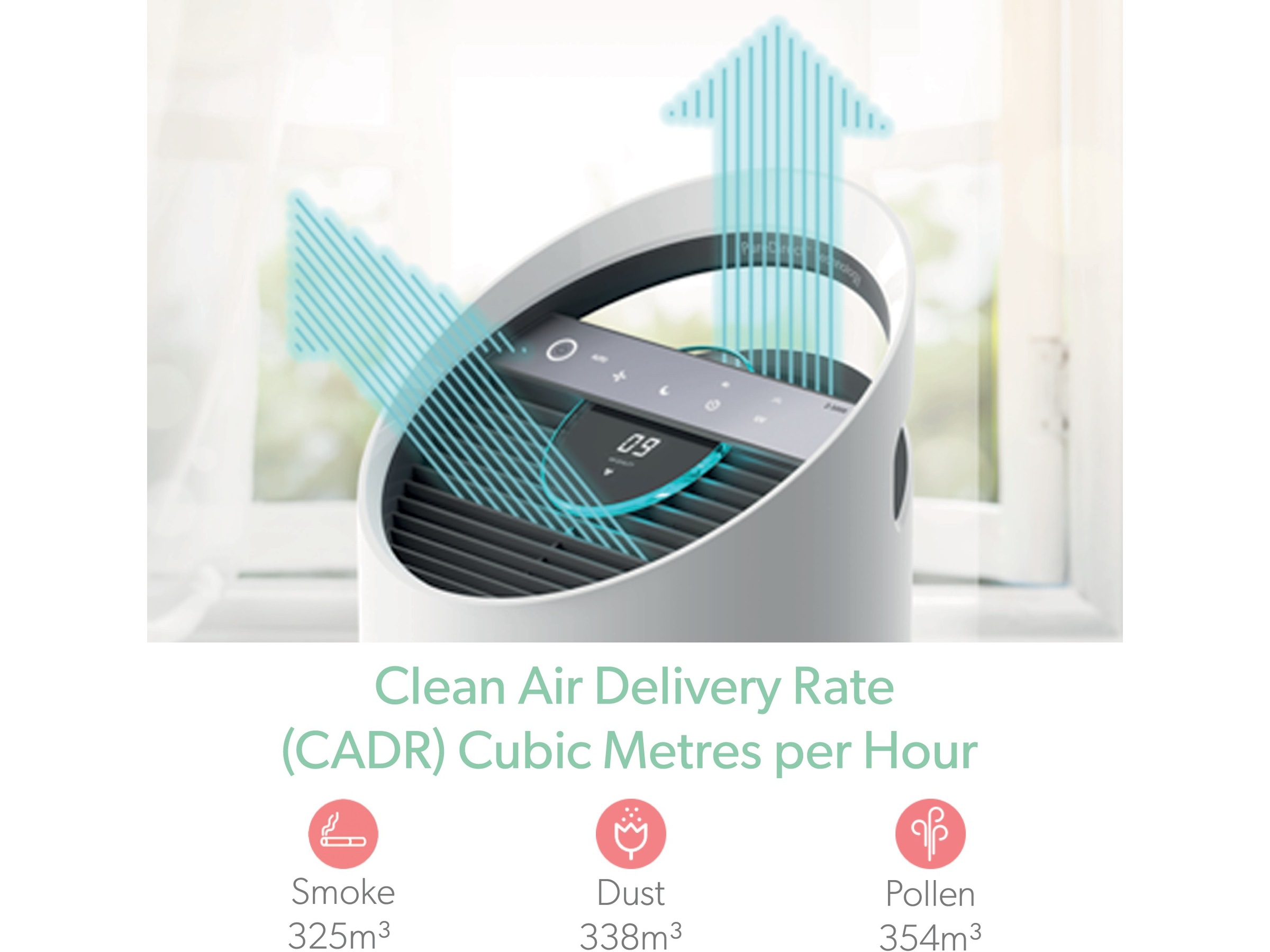 Ideell for rom opptil 70 m2 med CADR-verdier (Clean Air Delivery Rate) på 354 m3/t (pollen), 338 m3/t (støv) og 325m3/t (røyk). CARD verdien sier noe om hvor raskt den renser luften i rommet