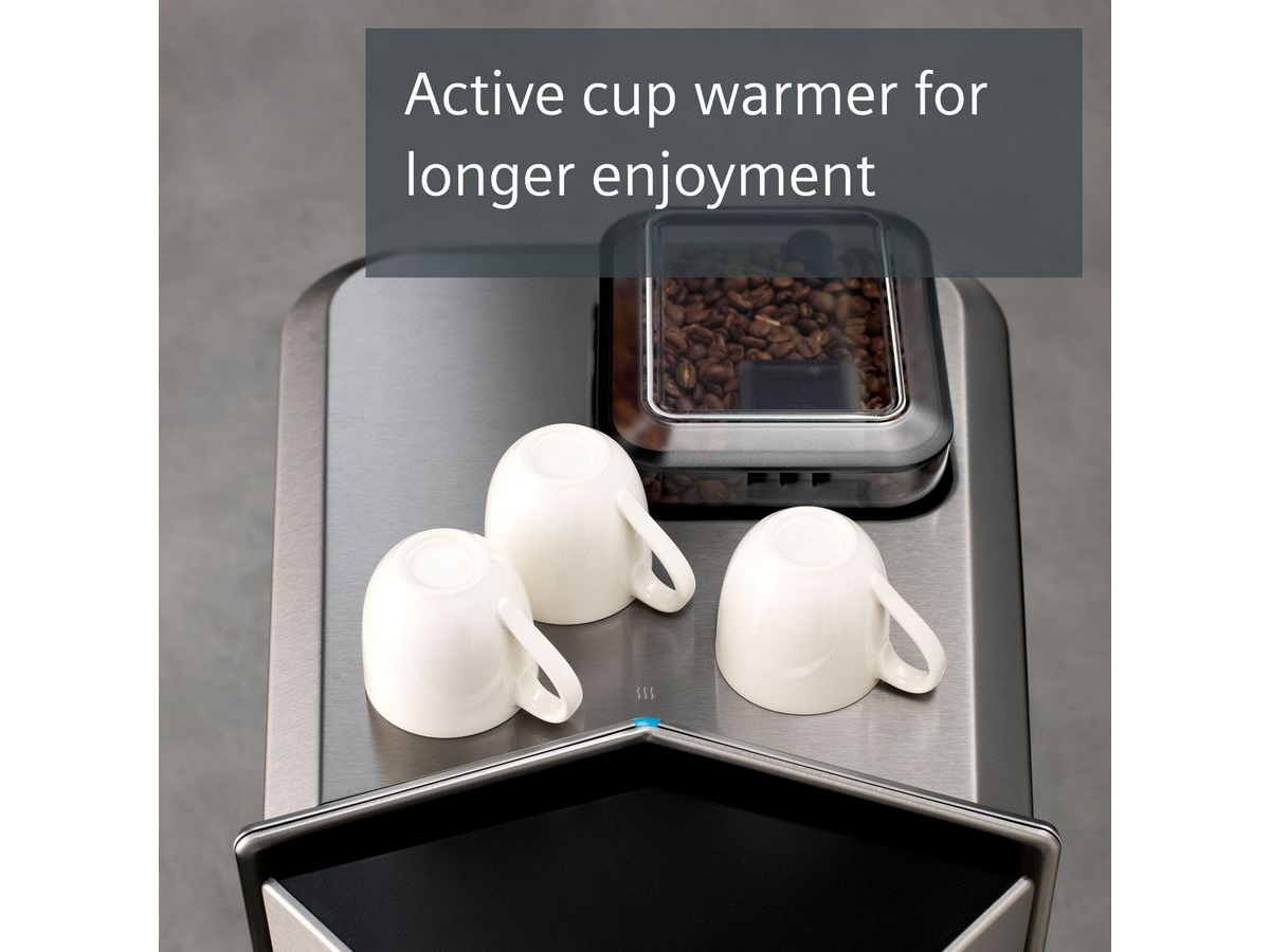 Med superSilent kan du nyte tilberedningen av kaffen i fred og ro. Den avanserte oppbyggingen av maskinen med optimal støydemping og spesialpakninger gir betydelig støyreduksjon – og gjør maskinen til den mest støysvake kaffemaskinen fra Siemens noensinne.