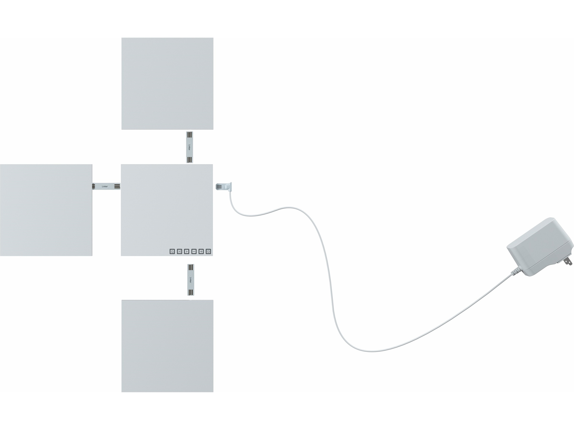 Nanoleaf Canvas består av berøringsstyrte LED Light Squares som kobles sammen langs på en hvilken som helst side for å skape den designen du ønsker.