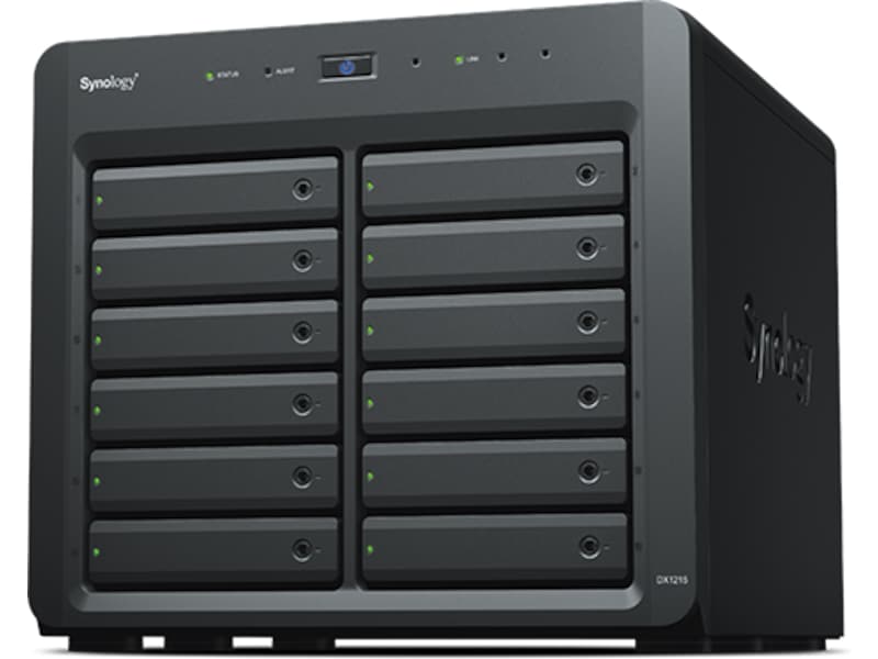 DX1215 kobles sikkert til Synologys DiskStation-servere med en spesialdesignet utvidelseskabel, noe som sikrer enkel tilkobling og maksimal datakapasitet. En tilkoblingshastighet på 6 Gb/s gjør at diskene i den tilkoblede Synology DX1215 kan fungere som de interne diskene i Synology DiskStation.
