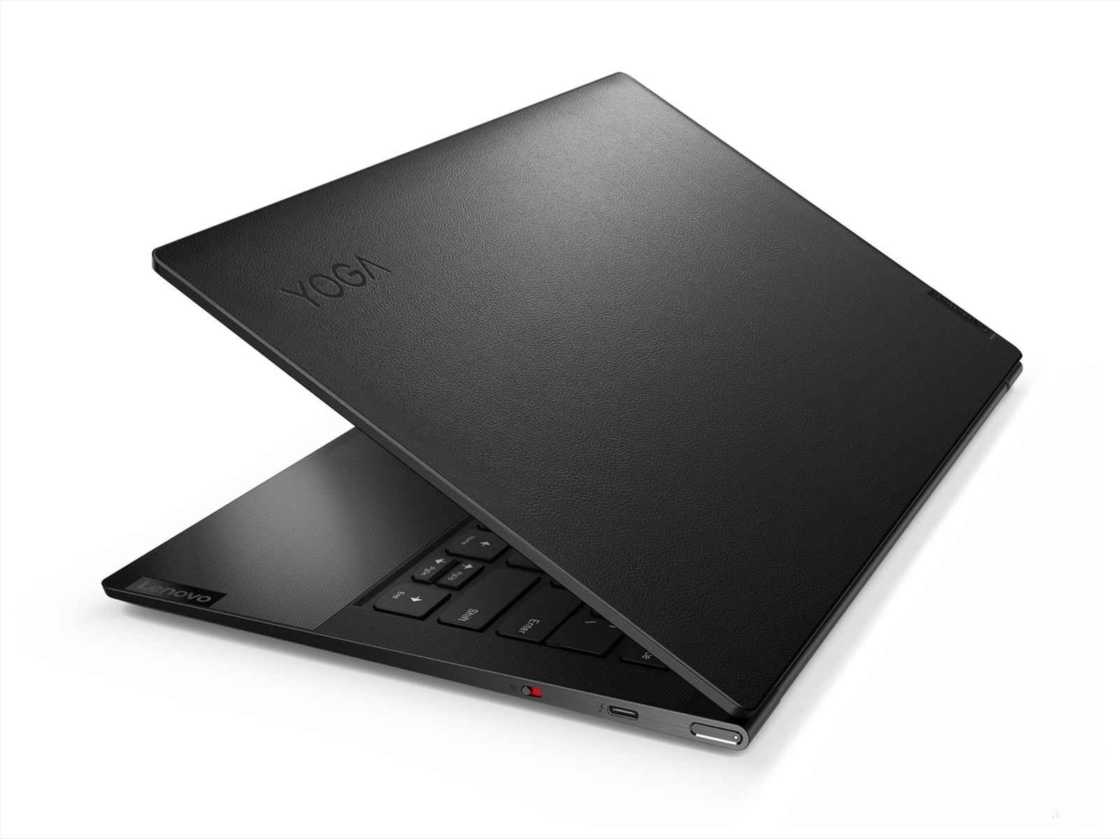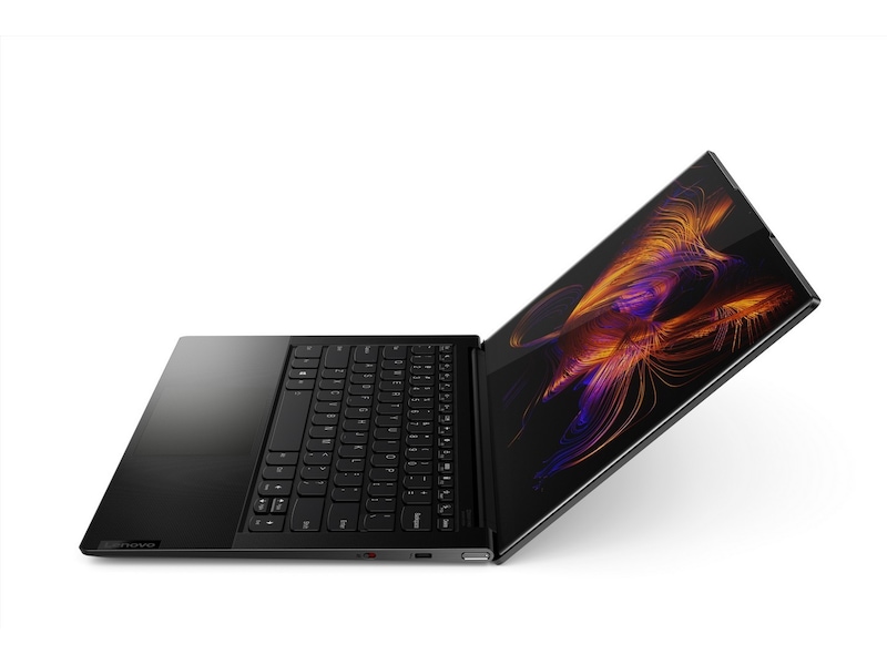 Yoga Slim 9i tilbyr ultratynn stil med presisjonsbearbeidet, førsteklasses metall bundet med et deksel i ekte lær. Designdetaljer inkluderer høypolerte kanter, et inngravert kamerahakk over skjermen som gjør det lettere å åpne med en hånd, og en kant-til-kant-håndleddstøtte laget av glass som føles kjølig og glatt å ta på. Med denne designen er styreflaten også innkapslet under glass - vi vet at folk liker den tilfredsstillende følelsen av å klikke, slik at Smart Sensor Touchpad faktisk vibrerer når du klikker.
