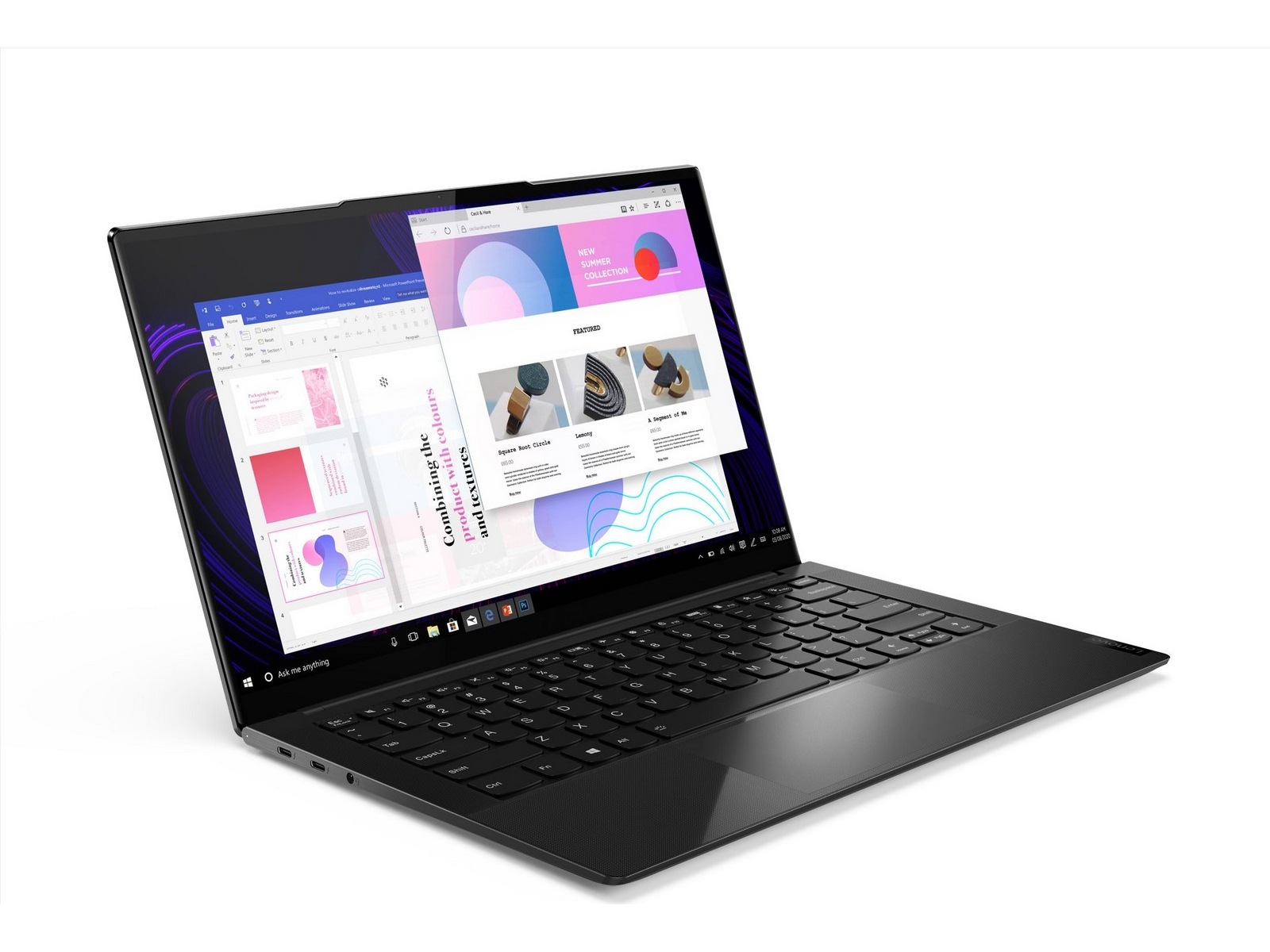 Se alle detaljene i et bredere utvalg av livlige farger med en 14" FHD skjerm. Kantet med mikrobord og optimalisert med Dolby Vision ™ og Intel® Iris® Xe Grafisk ytelse, Yoga Slim 9i, tilbyr kraftige, fordypende bilder kombinert med den tredimensjonale lyden fra et Dolby Atmos®-høyttalersystem som vender foran.