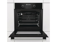 Ovnen, som nå er enda romsligere, kommer i en oval form som etterligner tradisjonelle trefyrte ovner. Dette gir en optimal luftsirkulasjon som omslutter maten fullstendig og gjør den mør og saftig på innsiden og herlig sprøpå utsiden. Luften blir enda bedre fordelt gjennom hele det 71 liters hulrommet med innfelte sider, som reduserer antall kalde punkter og gir en jevn bruning. Spesielle luftsirkulasjonsdynamikker gir gode muligheter for profesjonell matlaging på én enkel rist eller på flere rister samtidig.