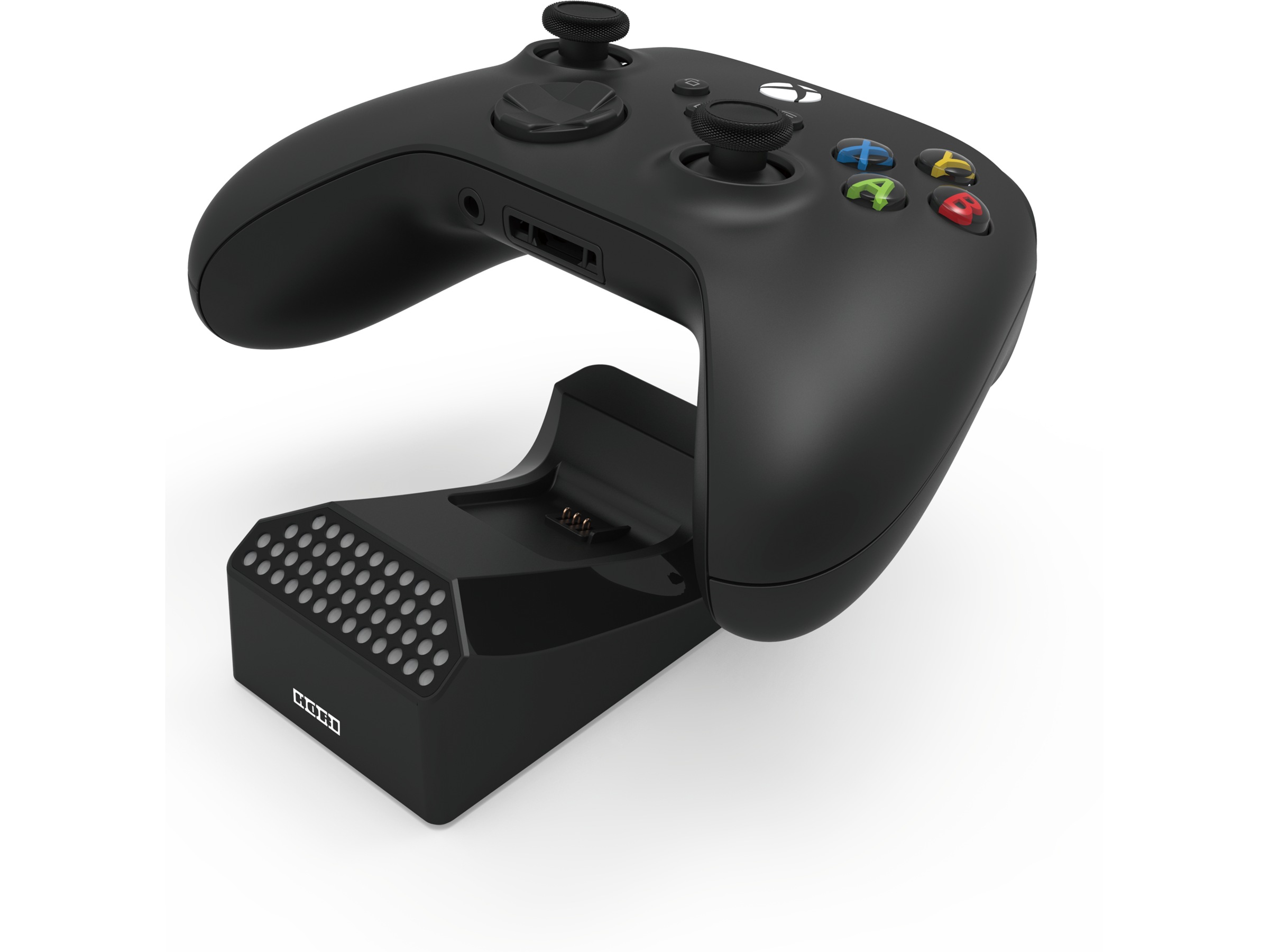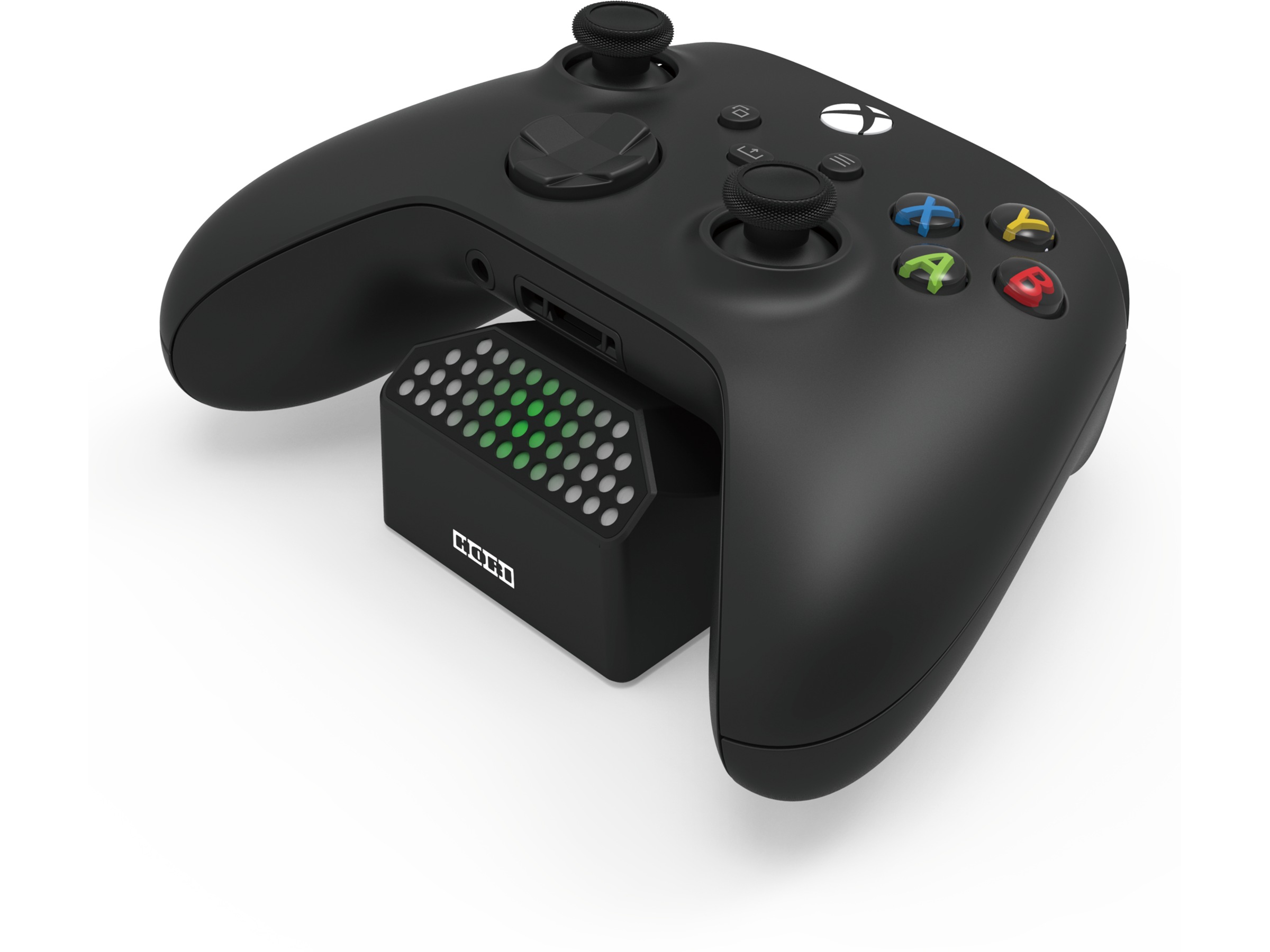 Ikke la døde batterier holde deg tilbake! Lad kontrollere og/eller batteripakker med HORI Solo-ladestasjonen designet for Xbox Series X|S. Lad kontroller og batterier enkelt ved å plassere dem på laderen! Ladestasjonen kobles til konsollen via USB. Få vite ladestatusen til en kontroller eller et batteri øyeblikkelig. Innebygde lysdioder indikerer lading med rødt og en fullført lading med grønt. Inkluderer også en batteripakke og to batterideksler slik at spillerne alltid er klare til å spille. Offisielt lisensiert av Microsoft.