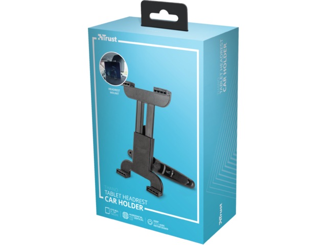 La dem se på en film eller spille et spill; med Trust Thano nettbrettholder for nakkestøtte vil barna ikke ha noe imot selv de lengste kjøreturene. Nettbrettholderen har en fullt justerbar synsvinkel slik at nettbrettet kan brukes i både liggende og stående retning – slik at man kan se på alle typer av medier. Alle knapper og kontakter på nettbrettet er lett tilgjengelige, slik at du er sikret full tilgang til det og kan se hele skjermen.