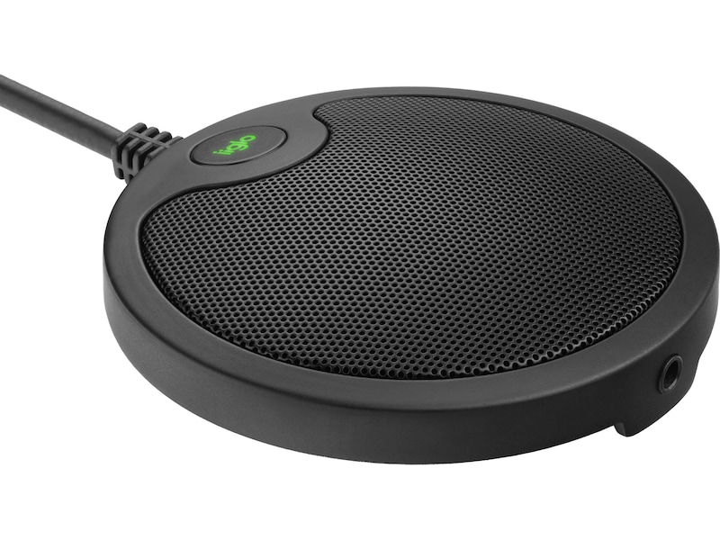 iiglo Office-mikrofonens robuste innfatning i metall beskytter den mot skader. Videre forhindrer et gripebelegg på undersiden at den sklir av bordet.