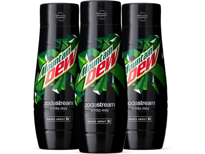 Du kan enkelt tilsette smakstilsetningen til det kullsyreholdige vannet ditt og lage opptil 24 liter Mountain Dew . SodaStream Mountain Dew smakstilsetning kommer i en praktisk flaske som er enkel å lagre og bruke. Opplev den søte og energigivende smaken av Mountain Dew hjemme med SodaStream Mountain Dew smakstilsetning.