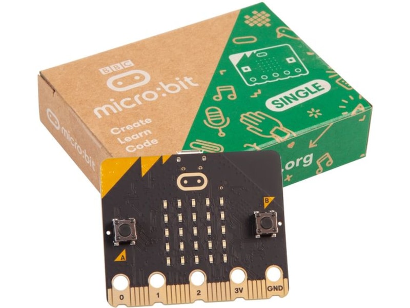 Vær oppmerksom på at du også trenger et batteri bakside med 2x AAA-batterier (ikke inkludert i singelpakken) samt en USB-kabel for å koble micro:bit til en datamaskin. (Hvis du sender kode til micro:bit fra et nettbrett eller en telefon via Bluetooth, i stedet for ved hjelp av en datamaskin, er ikke USB-kabelen nødvendig).