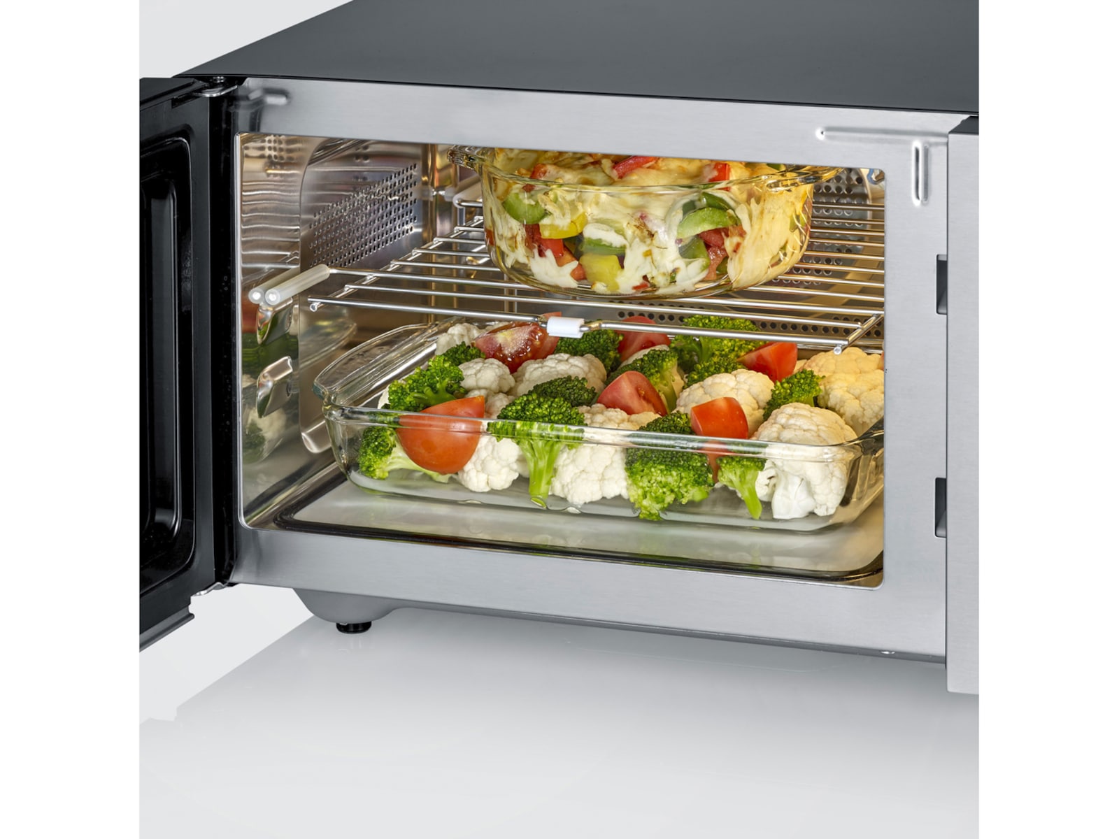 Den uttrekkbare risten tillater til og med matlaging i to nivåer, slik at to retter kan tilberedes samtidig.