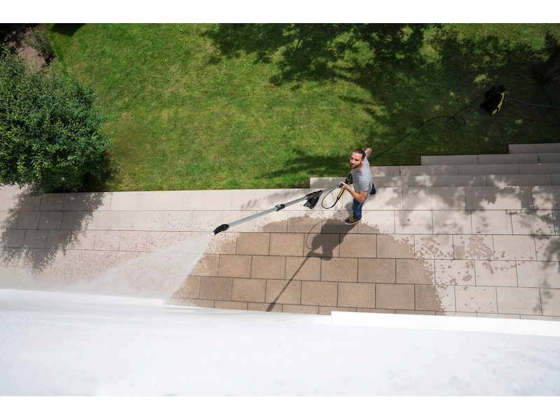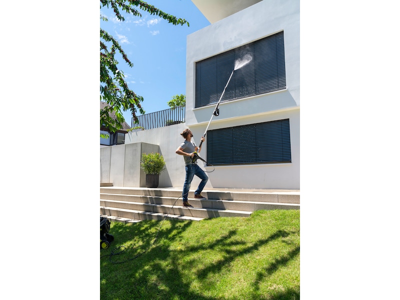 Med teleskop-sprøytelansen blir det lett å nå områder som er vanskelig tilgjengelige, f.eks. under fasader, slik at de kan rengjøres raskt og uten problemer.
