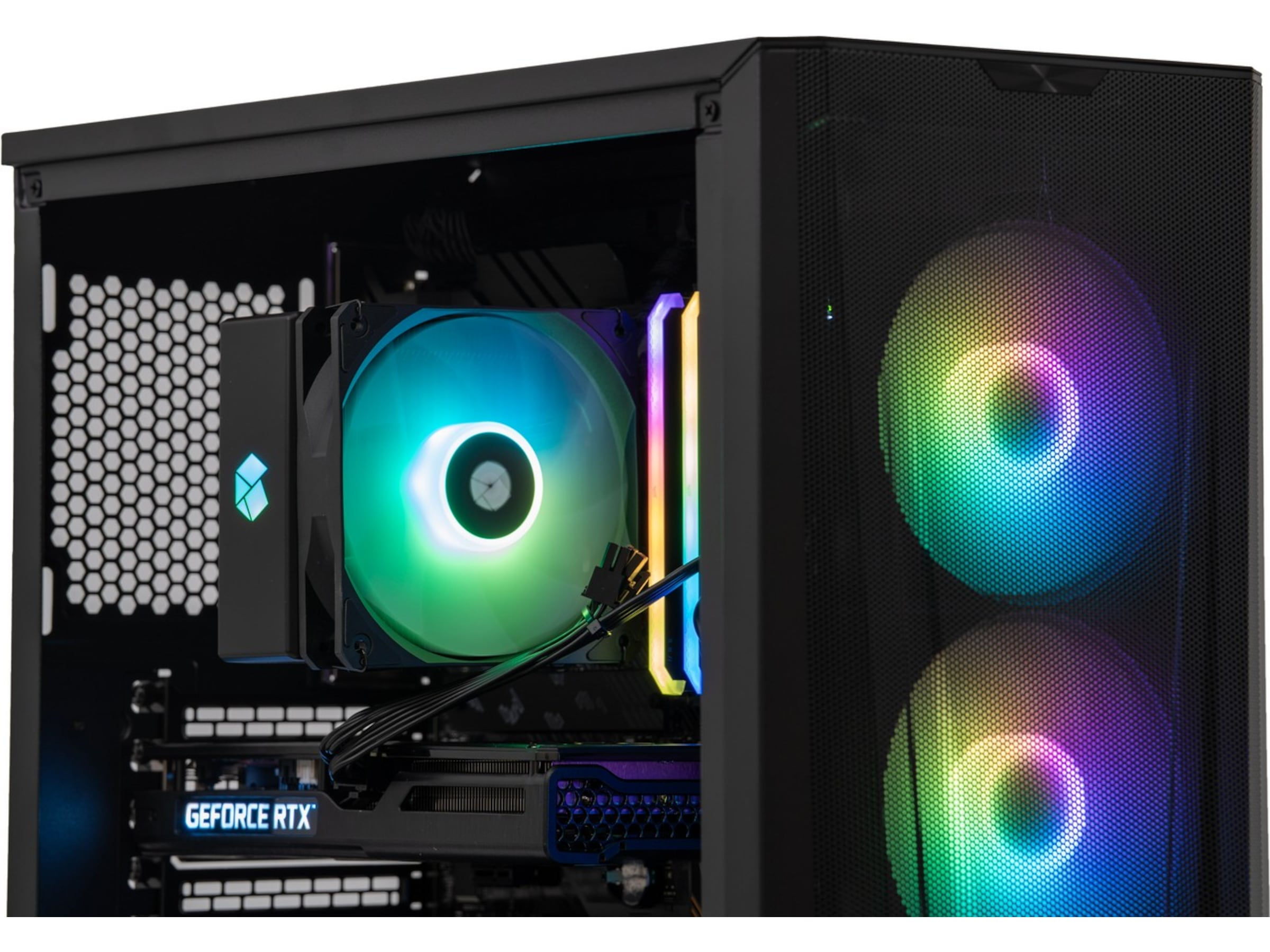 Ønsker du en fargerik gaming-PC som lar deg spille alle spill uten problemer, anbefaler vi Komplett a135 Epic Gaming PC. Med det spreke grafikkortet RTX 3060 fra NVIDIA er du sikret fantastiske gamingopplevelser. Kabinettet er stilrent og enkelt, og glasset på siden lar deg lyse opp gamingrommet med fantastisk RGB-belysning.