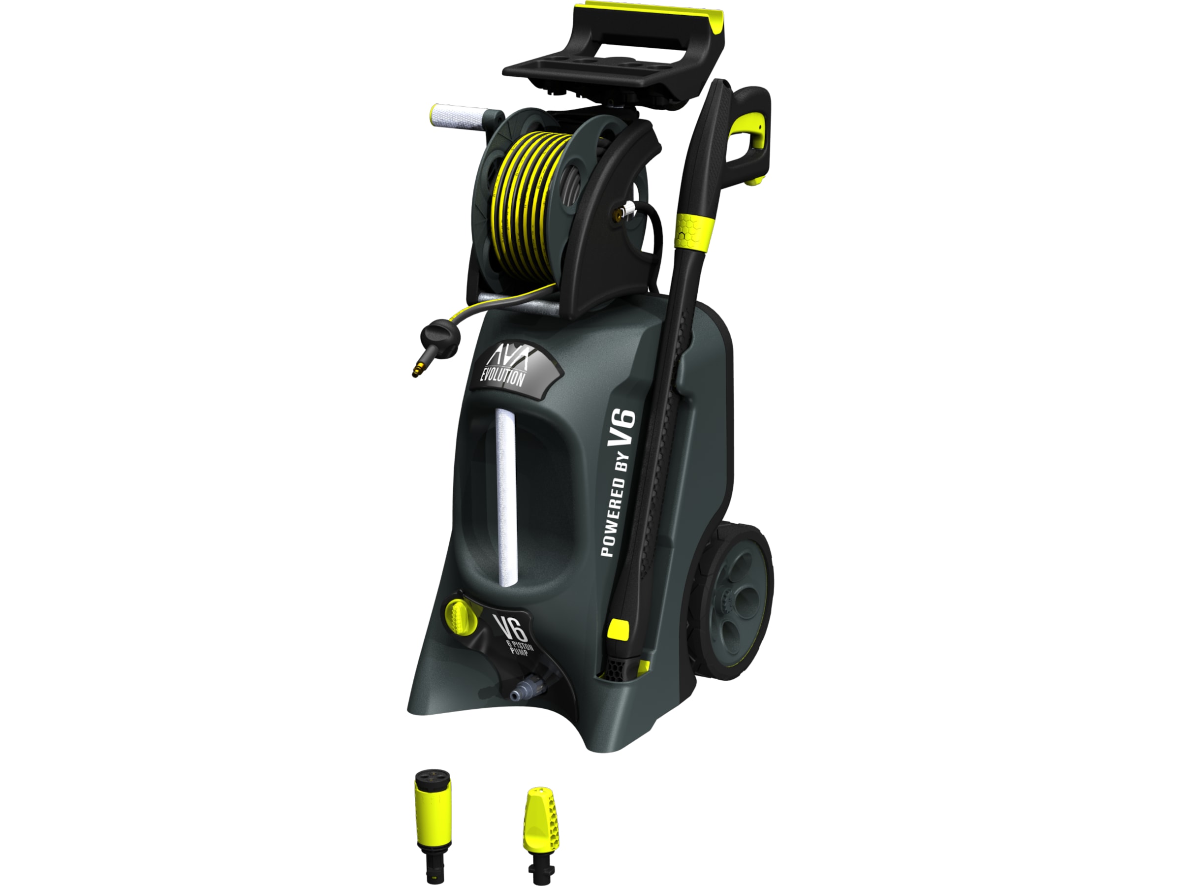 AVA sin Evolution serie er utstyrt med to håndtak. Det toppmonterte håndtaket med verktøysoppheng og arbeidsflate gjør det lett å trekke spyleren etter seg. Brukes når man triller spyleren på fast underlag. På maskinens front finner man enda et håndtak, dette er praktisk å bruke hvis man skal bære maskinen i trapper eller løfte den inn bagasjerommet på en bil.