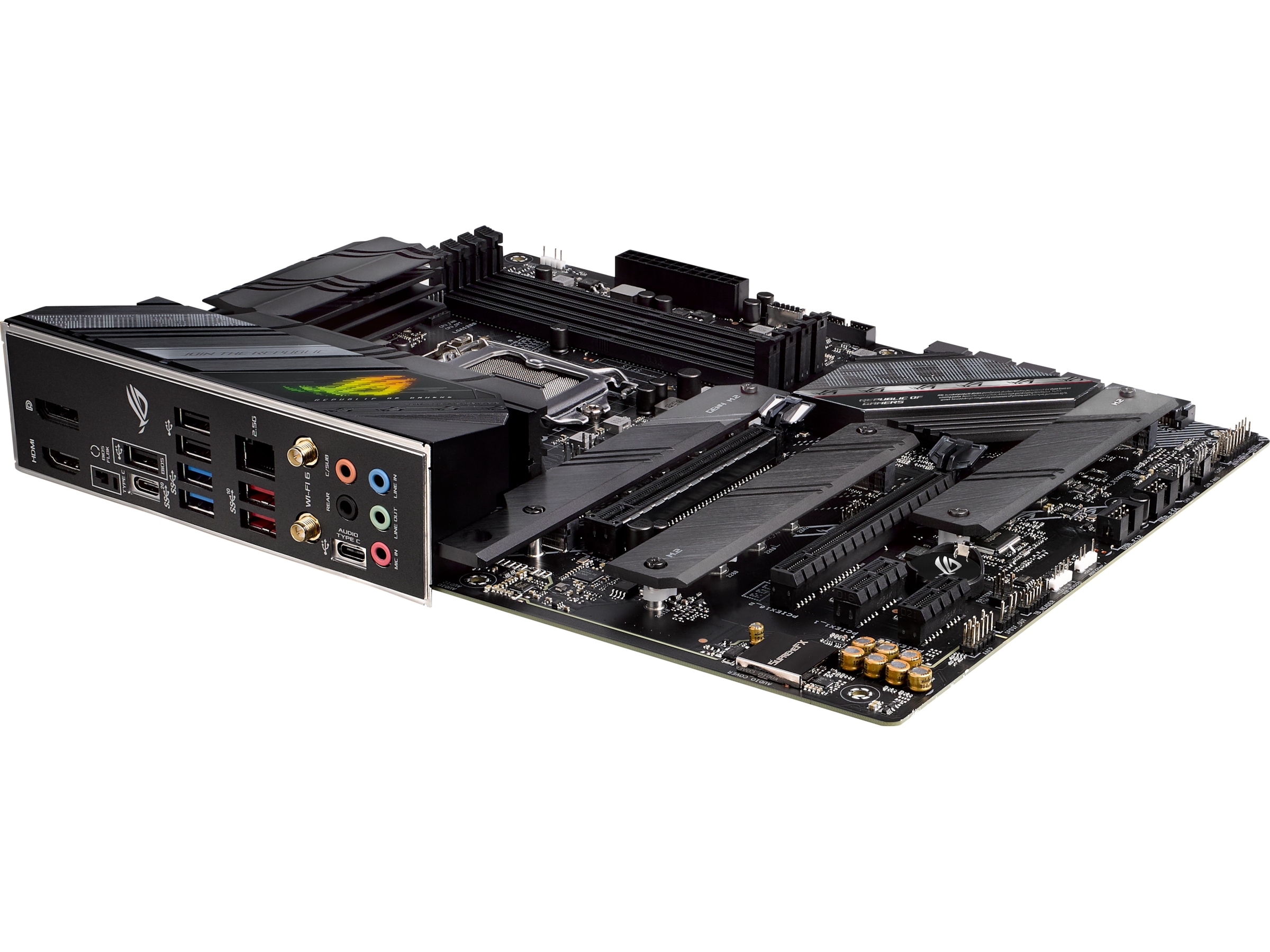 Det patenterte ROG I/U-dekselet har en elegant mattsvart overflate og leveres ferdigmontert, noe som ytterligere forenkler prosessen med å installere hovedkortet.