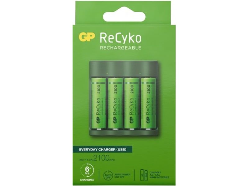 Denne allsidige laderen fungerer via USB eller en hvilken som helst GP ReCyko-ladestasjon (spesielt utviklet for ReCyko-ladermodellene B421, M451 og P461). Med fire 850 mAh oppladbare AA-batterier inkludert er du klar til å komme i gang med denne optimale ladeløsningen.