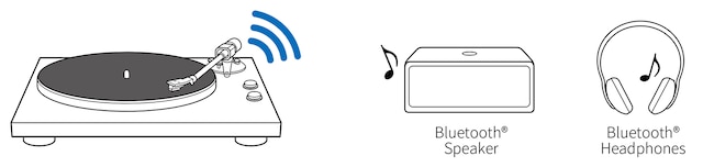 Takket være Bluetooth®-funksjonen gir den også en helt ny måte å lytte til vinylplater på. Ingen ekstra kostnader for hi-fi-komponenter eller kompliserte ledninger kreves. Bare Bluetooth®-høyttalere eller hodetelefoner som du kanskje har til dine iPhones, er nødvendig for å nyte vinylplatenes verden.